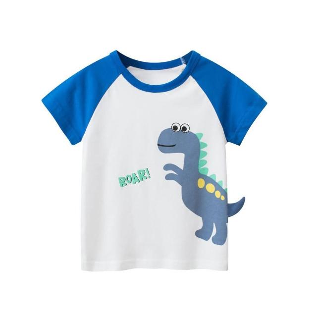 i揪團 韓版夏季男童純棉短袖T恤 男童短袖上衣 男童短t 兒童短袖 卡通印花上衣 車車大象熊熊恐龍(B00-7)