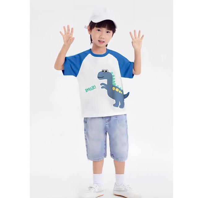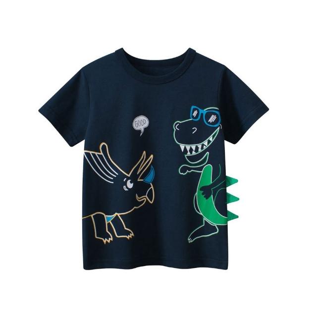 i揪團 韓版夏季男童純棉短袖T恤 男童短袖上衣 男童短t 兒童短袖 卡通印花上衣 車車大象熊熊恐龍(B00-7)
