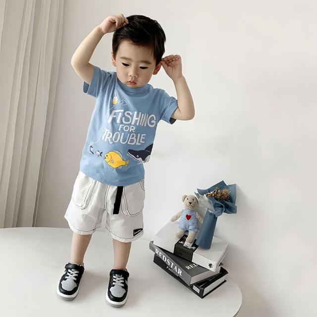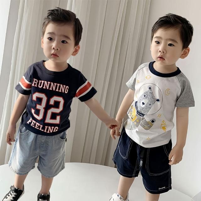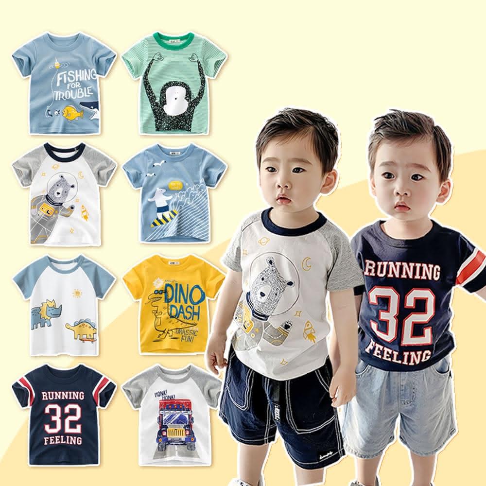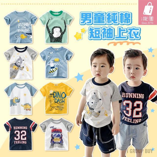 i揪團 男童純棉短袖上衣 男童休閒印花上衣 男童短t 男童短袖t恤 兒童上衣 童裝 卡通印花 撞色 條紋 帥氣 鯊魚 恐龍 熊熊 猴子 汽車 (B53)