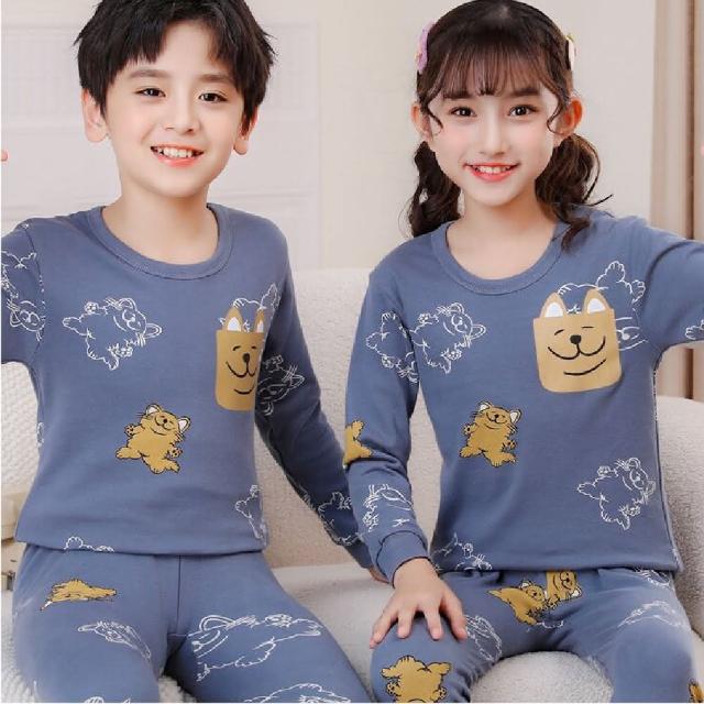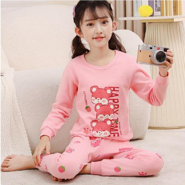 i揪團 兒童圓領長袖居家服 兒童居家套裝 兒童睡衣套裝 長袖長褲 睡衣睡褲 卡通印花 束腳褲 秋冬睡衣 男童睡衣 女童睡衣 花花 兔子 熊 貓 狗 恐龍 車車 (K130)