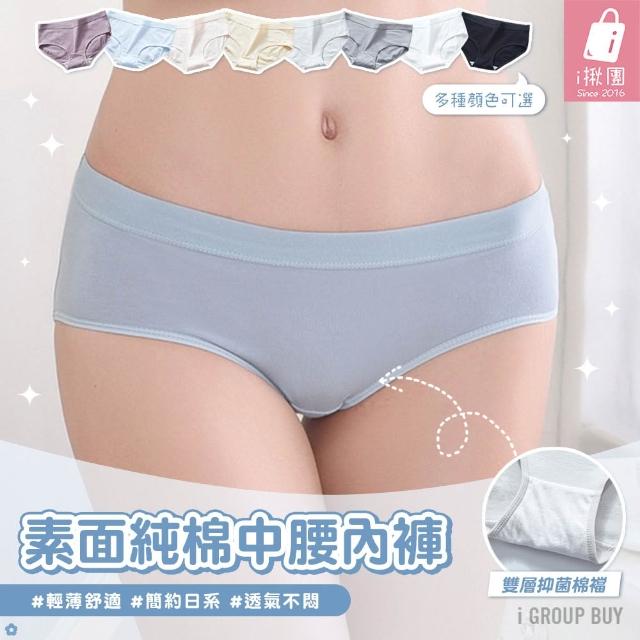 i揪團 素面純棉中腰內褲 女生內褲 純棉內褲 棉襠內褲 抑菌襠 三角褲 素面內褲 純色內褲 日系 簡約 透氣(K116)