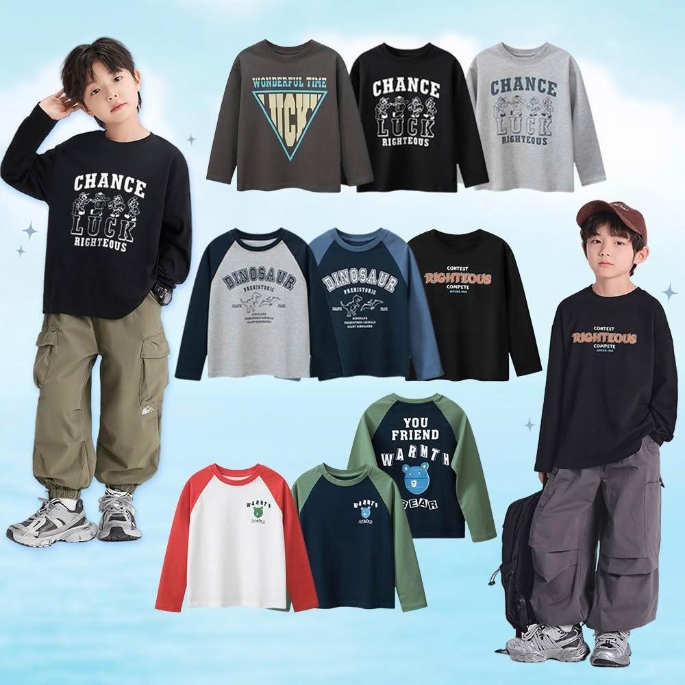 i揪團 中大童薄款純棉長袖上衣 男童薄長袖 長袖T恤 棉質上衣 純棉T恤 春秋款 中童 大童 內搭 打底衫(K122)