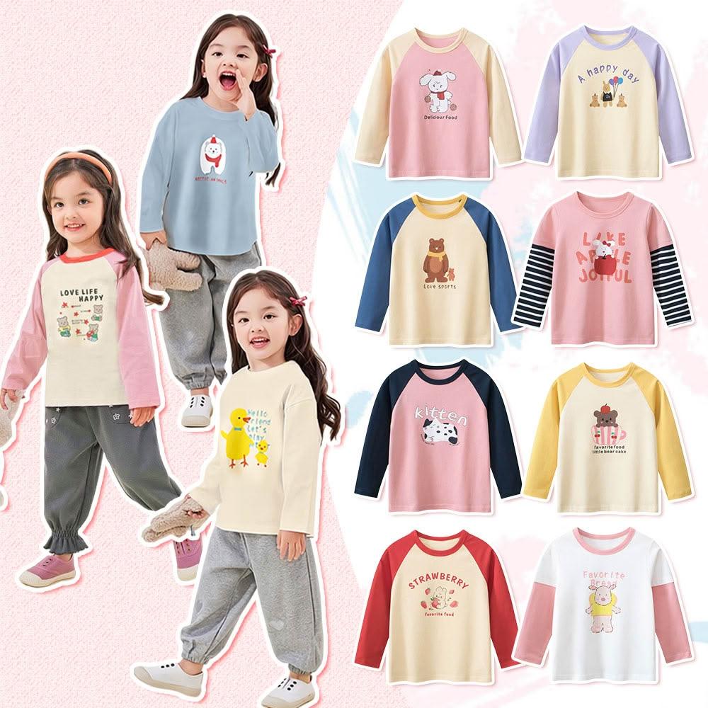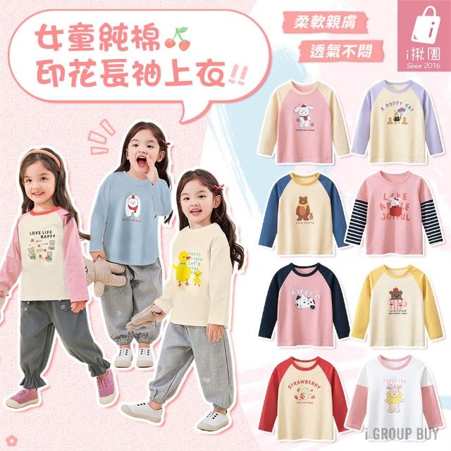 i揪團 女童純棉印花長袖上衣 薄款上衣 春秋長袖T恤 女童長袖上衣 女童上衣 兒童長袖上衣 兒童上衣 純棉上衣 薄長袖 中小童(K129)