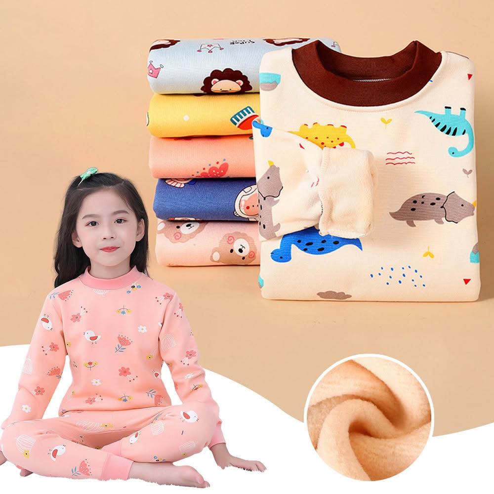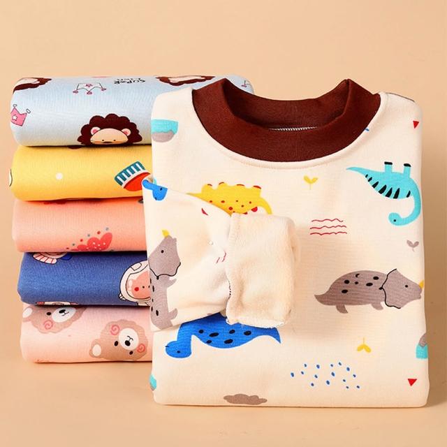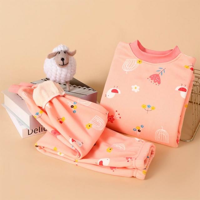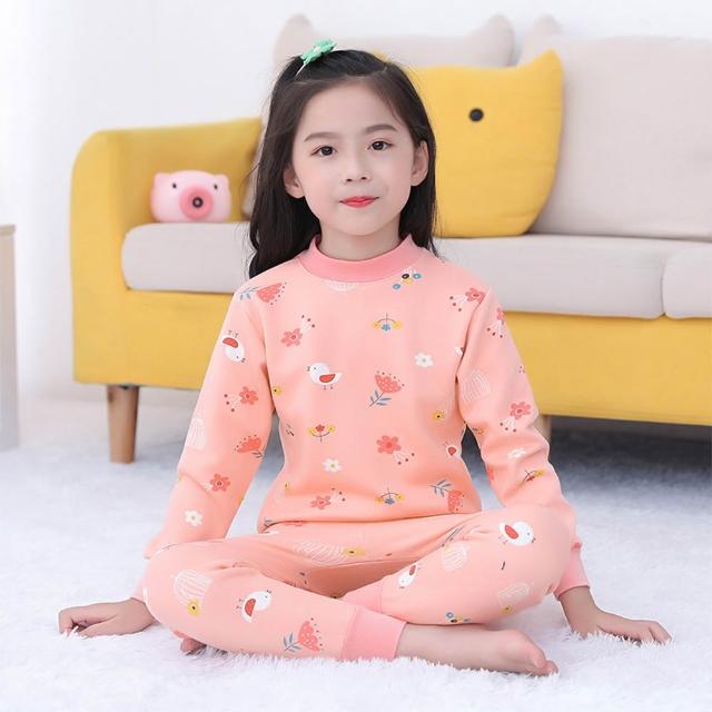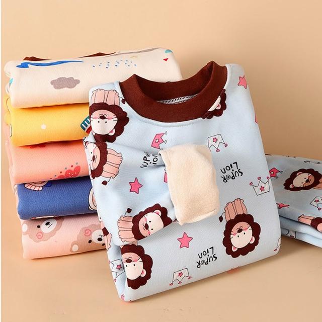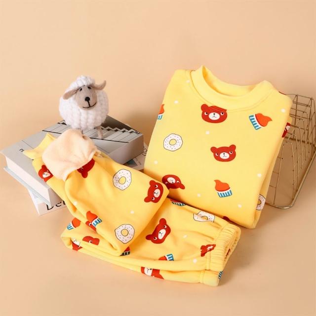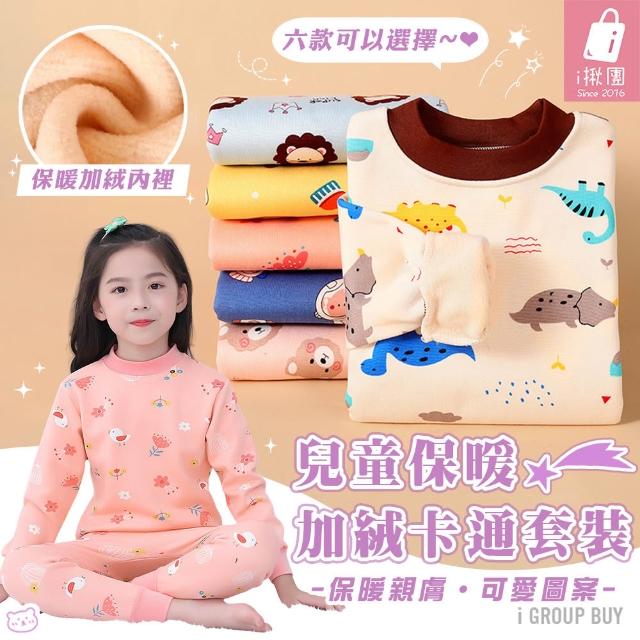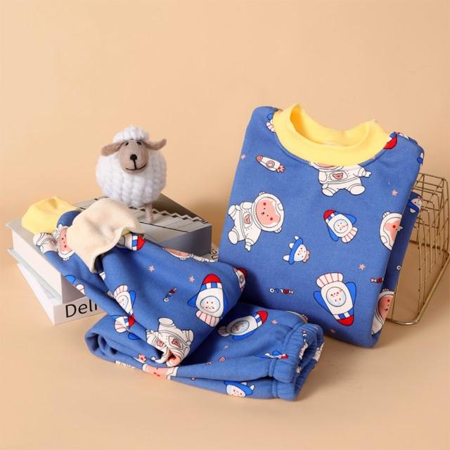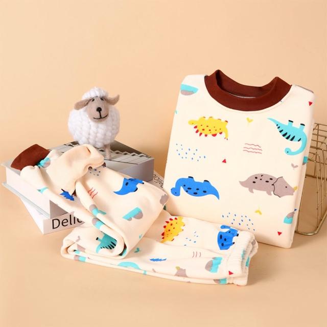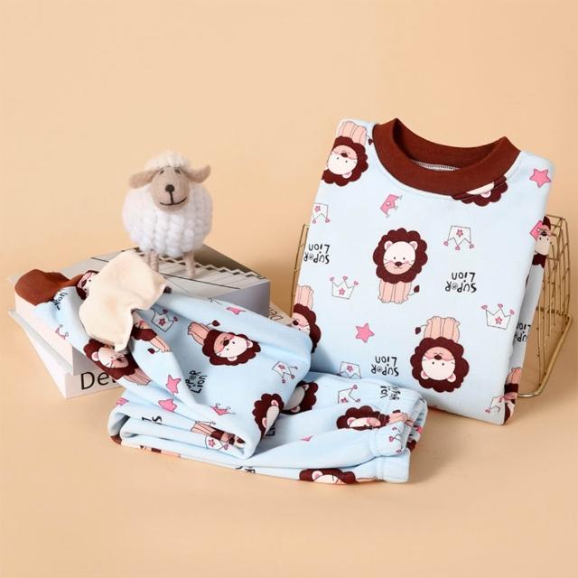 i揪團 兒童保暖加絨卡通套裝 秋冬套裝 家居服套裝 保暖套裝 兒童睡衣套裝 男童 女童 大童 兩件式 熊熊 小鳥 太空人 恐龍 獅子(K156)