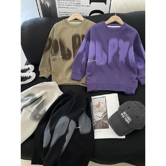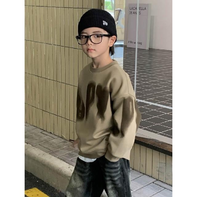 i揪團 男中大童英文印花上衣 男中大童長袖上衣 男童長袖上衣 男童長袖t恤 男童上衣 男童衛衣 兒童長袖上衣 兒童大學T 寬鬆 潮流(K170)