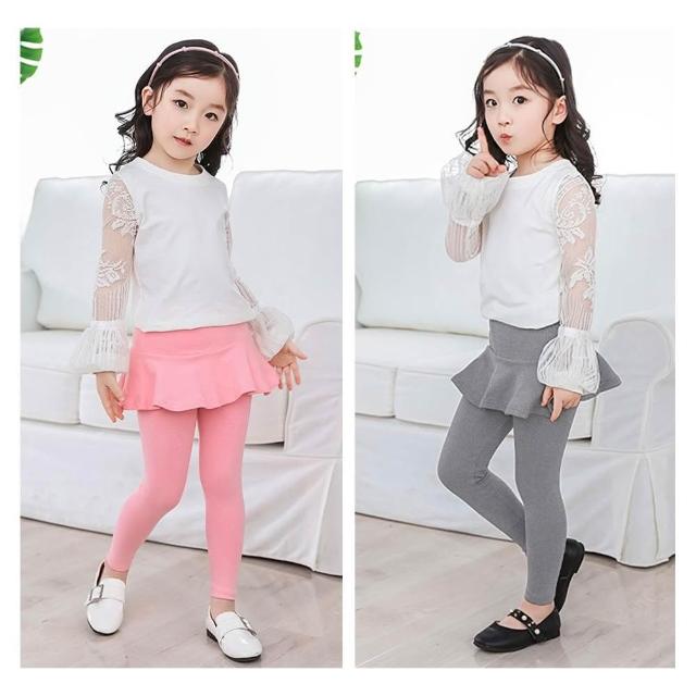 i揪團 女童百搭彈力假兩件纯棉褲裙 裙子 長褲 荷葉邊 打底褲裙 女童長褲 兒童長褲 百搭 外穿(B60)