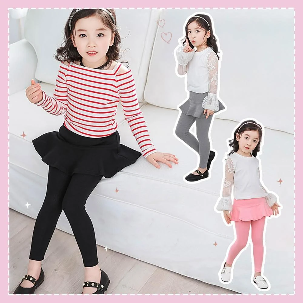 i揪團 女童百搭彈力假兩件纯棉褲裙 裙子 長褲 荷葉邊 打底褲裙 女童長褲 兒童長褲 百搭 外穿(B60)