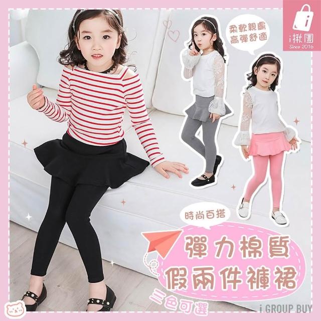 i揪團 女童百搭彈力假兩件纯棉褲裙 裙子 長褲 荷葉邊 打底褲裙 女童長褲 兒童長褲 百搭 外穿(B60)