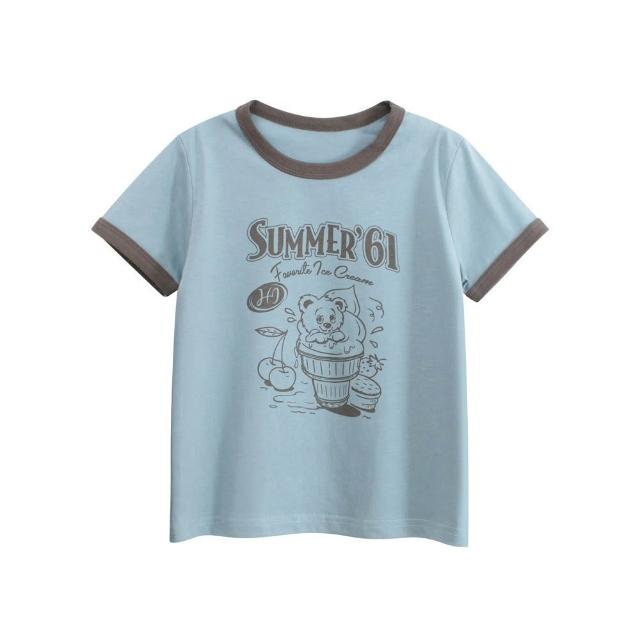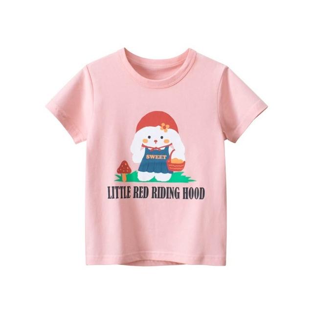 i揪團 韓版夏季女童純棉短袖T恤 兒童短袖印花上衣 兒童上衣 短袖T恤 女童短袖 女童 童裝 印花 狗狗 熊熊(B49)