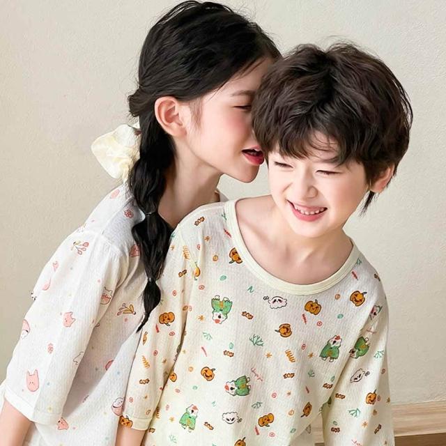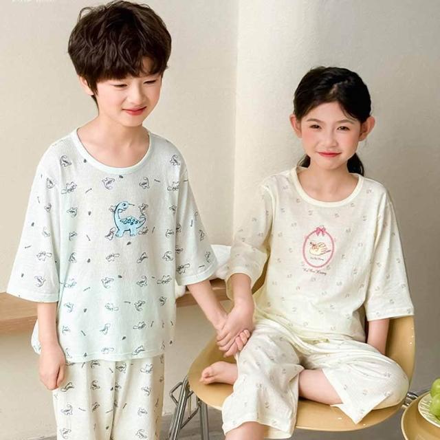i揪團 中大童夏季薄款七分袖睡衣 兒童居家服 中大童居家服 兒童套裝 短袖短褲 男童 女童 童裝(K174)