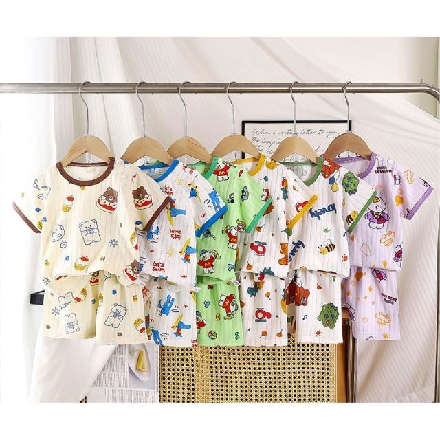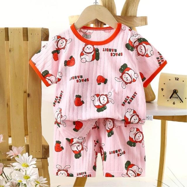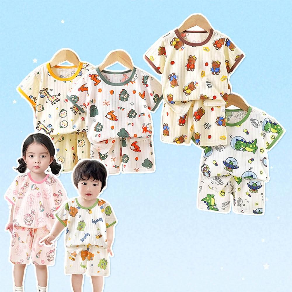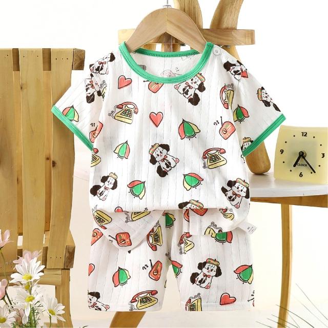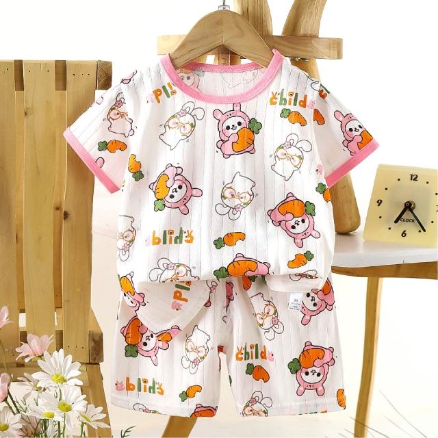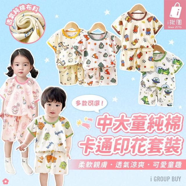 i揪團 中小童純棉卡通印花套裝(14-25) 兒童短袖套裝 兒童居家服 居家套裝 睡衣套裝 短袖短褲 透氣 (K225)