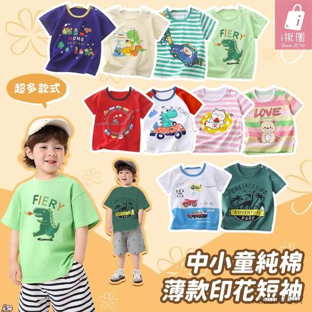 i揪團 中小童純棉薄款印花短袖 男童短袖 女童短袖 短袖上衣 短袖T恤 短T 棉T 卡通印花(K229)