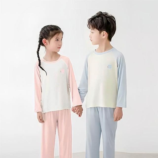 i揪團 中大童莫代爾春夏拼接居家服 兒童長袖睡衣 兒童居家套裝 睡衣套裝 兩件式 男童女童 (E112-2)