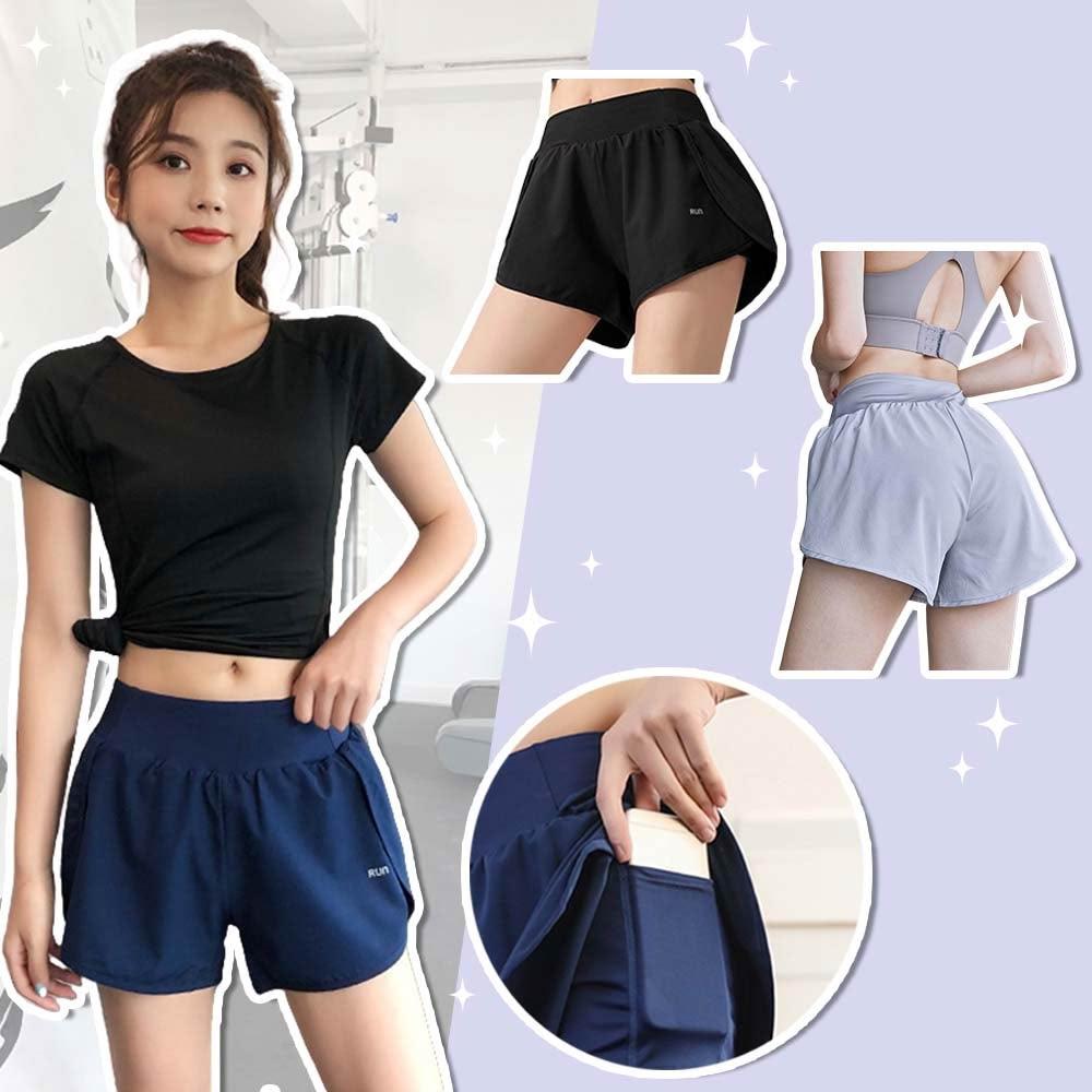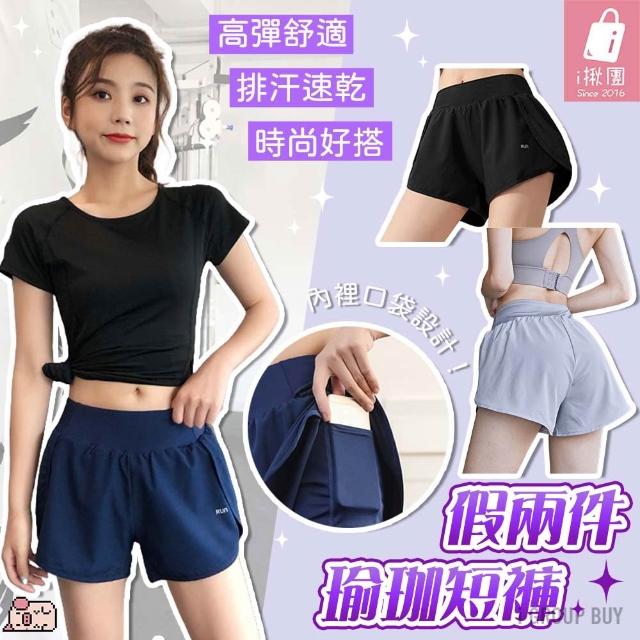i揪團 假兩件瑜珈短褲 口袋 瑜珈褲 運動短褲 健身 女生 褲子 防走光 簡約風 休閒女裝褲子 內搭褲 (F01-1)