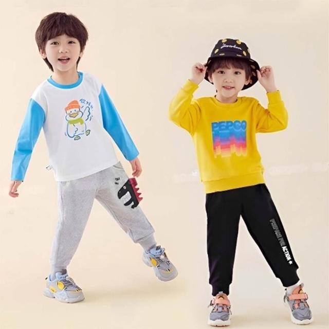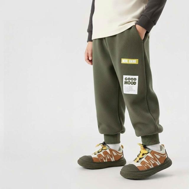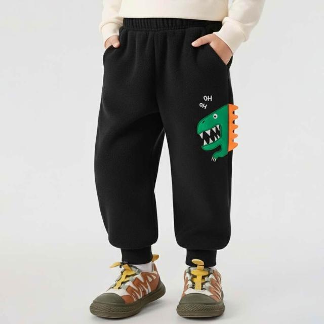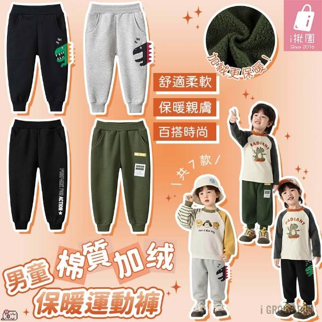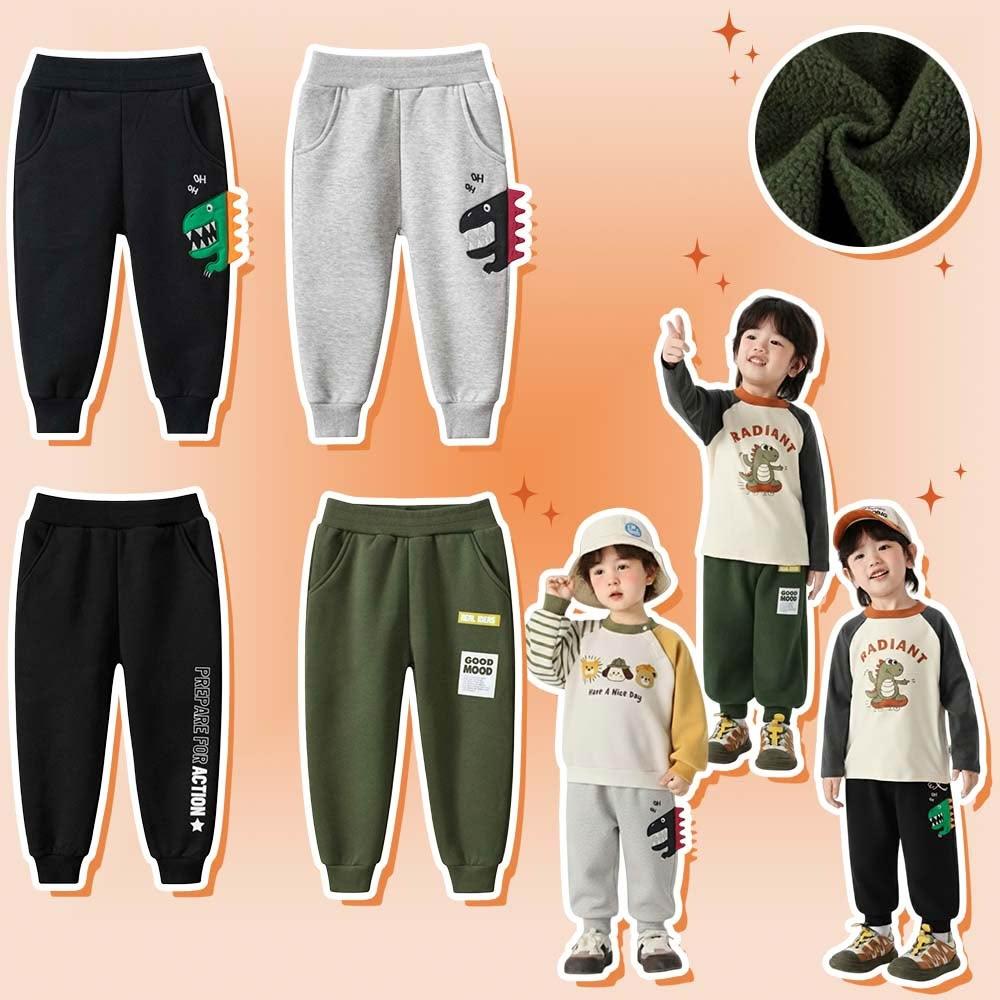 i揪團 男童棉質加绒保暖運動褲 秋冬保暖長褲 中小童寬鬆休閒長褲 童裝 兒童運動束口褲 字母恐龍 (G22-2)