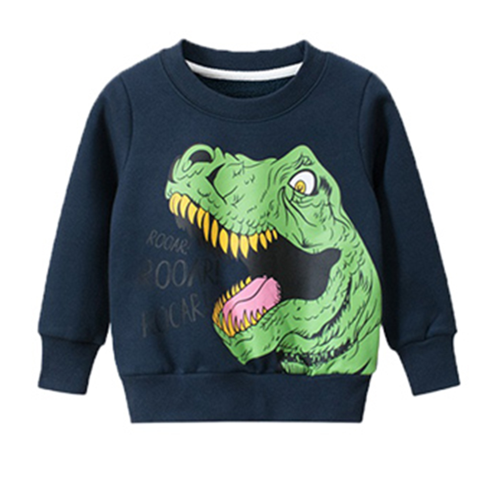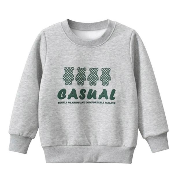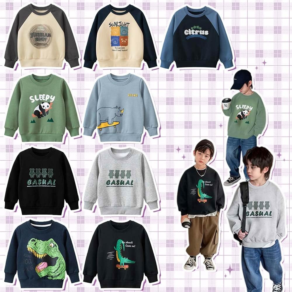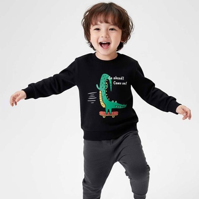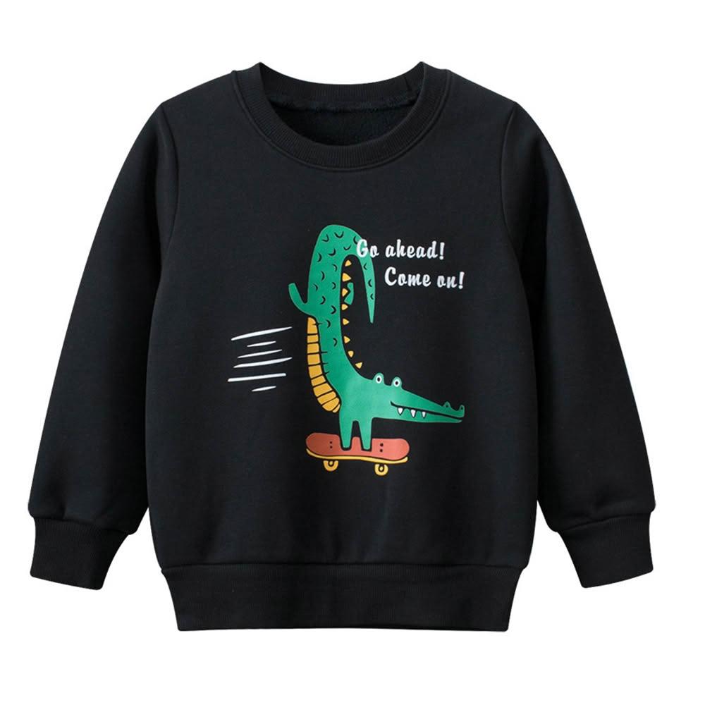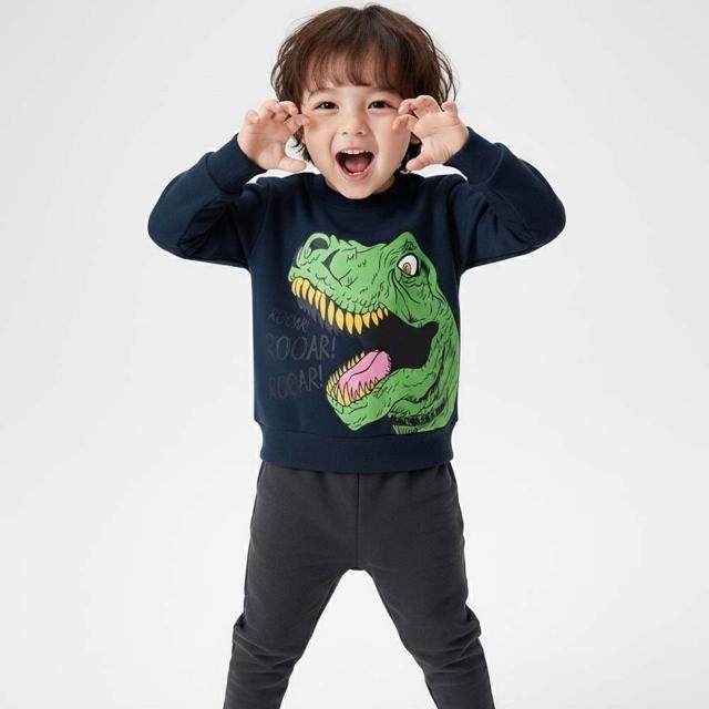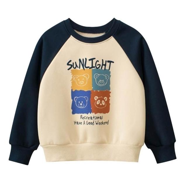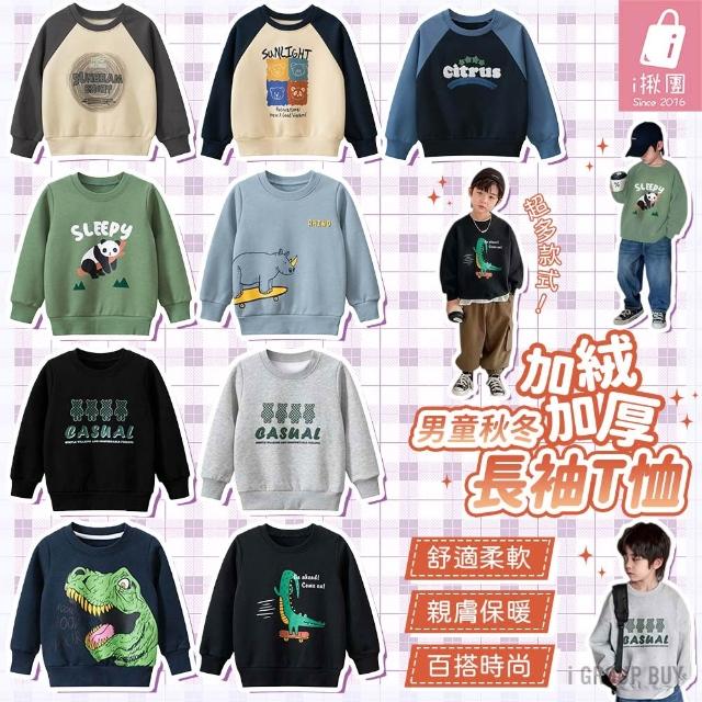 i揪團 男童秋冬加絨加厚長袖T恤 兒童長袖上衣 棉質長袖 保暖休閒 恐龍字母熊熊 拚色 撞色 單色 秋冬季(B30-1)