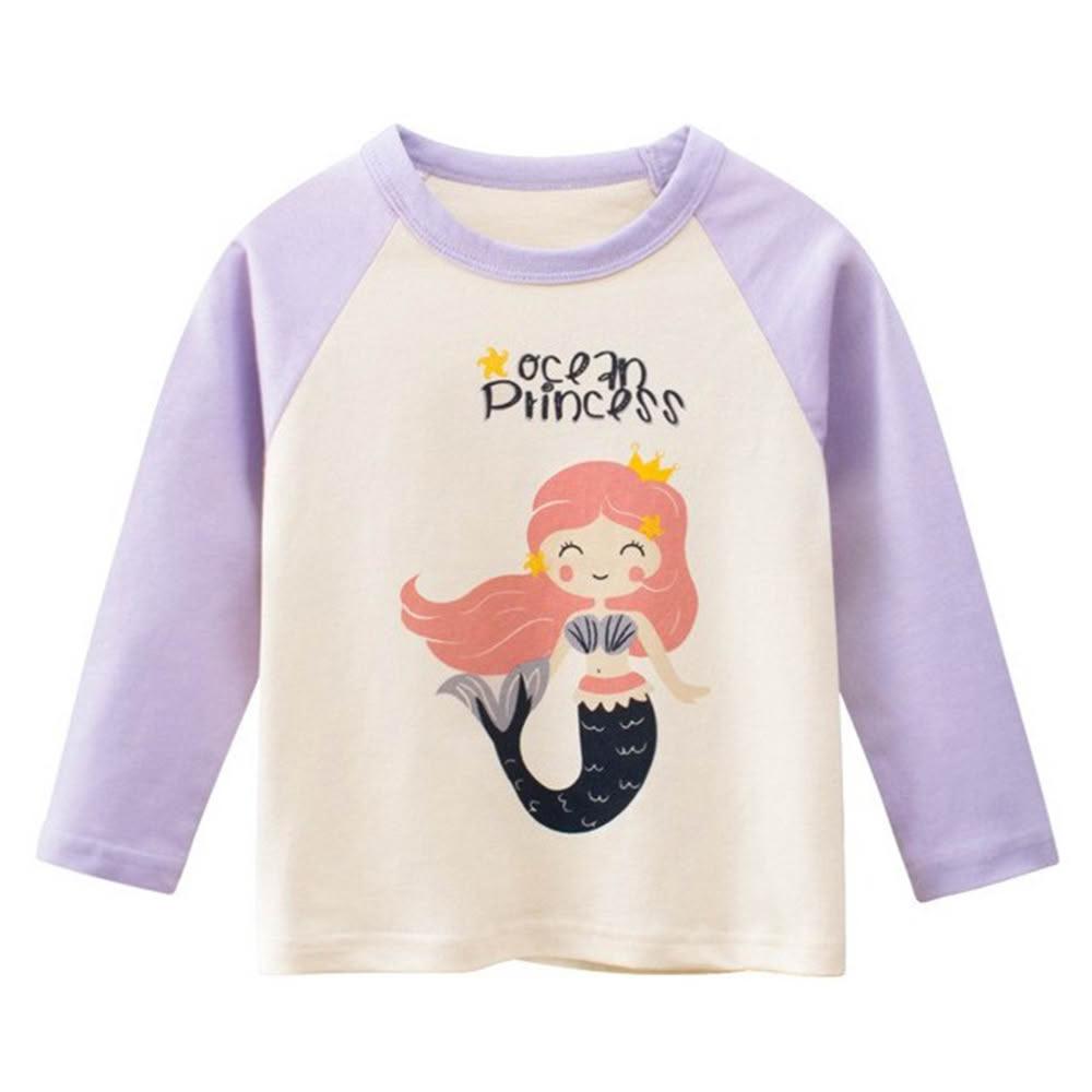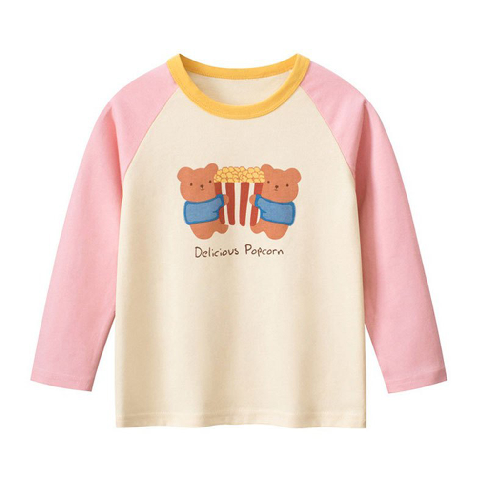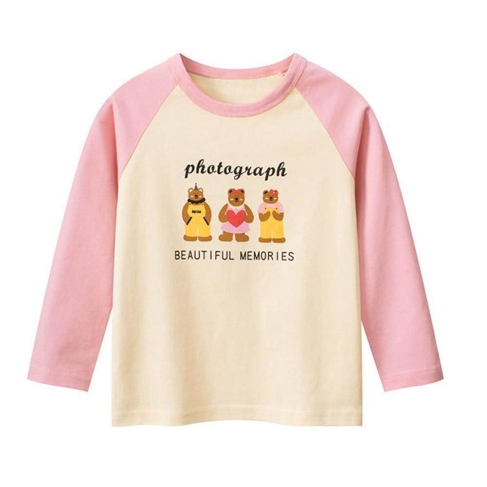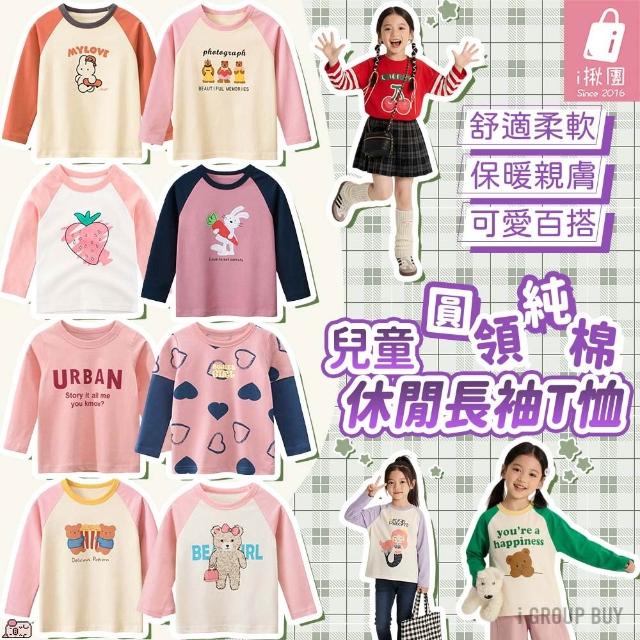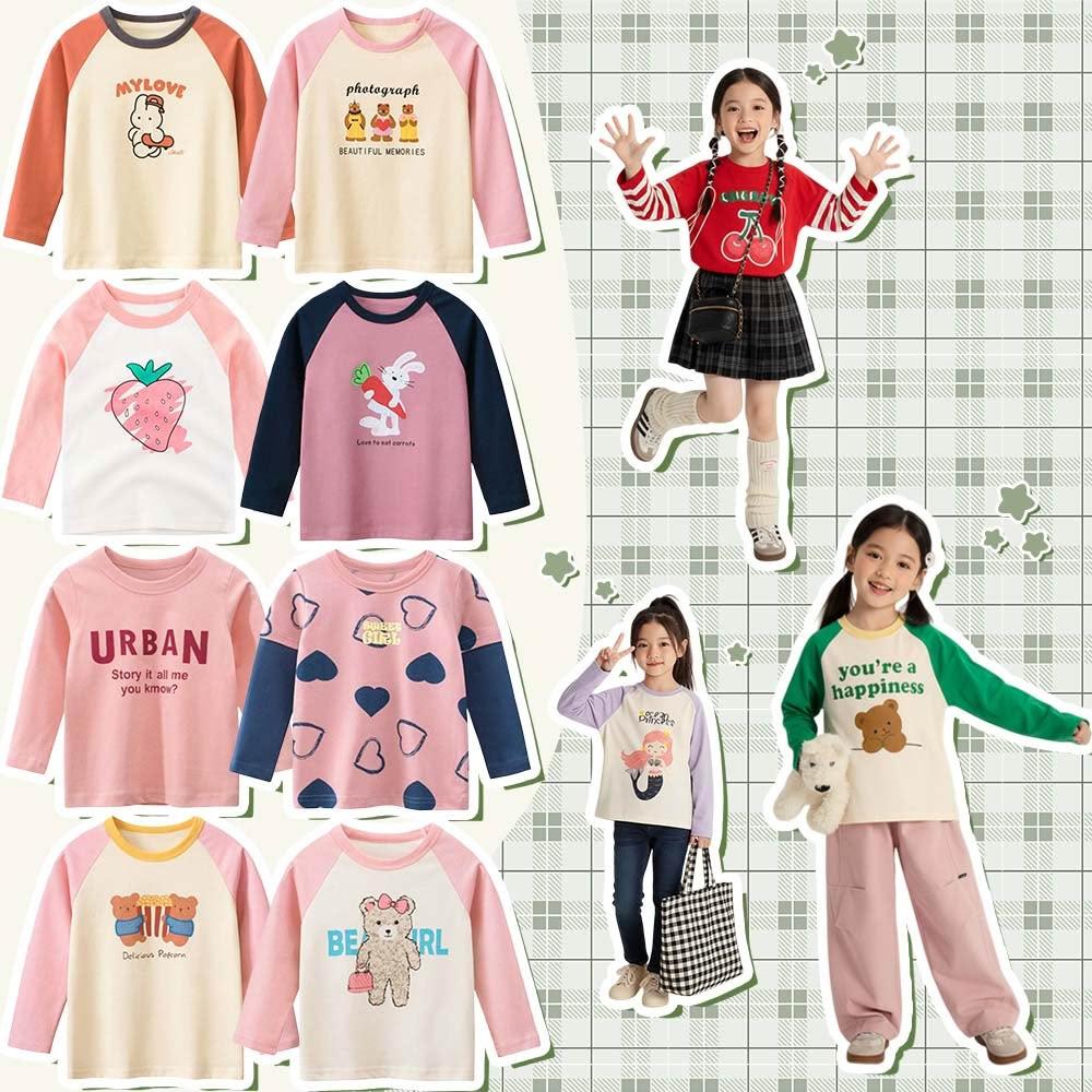 i揪團 兒童純棉圓領休閒長袖T恤 草莓插肩袖 女童長袖上衣 薄款T恤 兒童長袖 印花棉質童裝 拚色 撞色(B71)