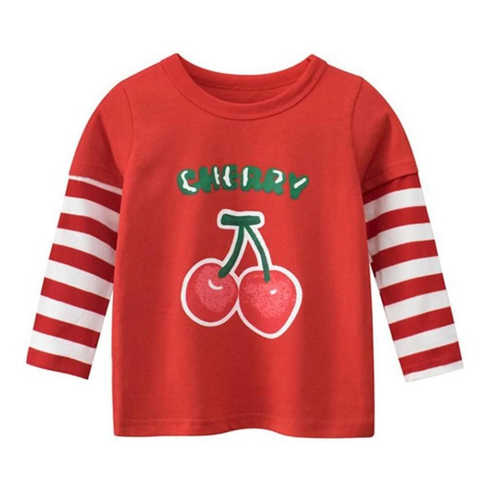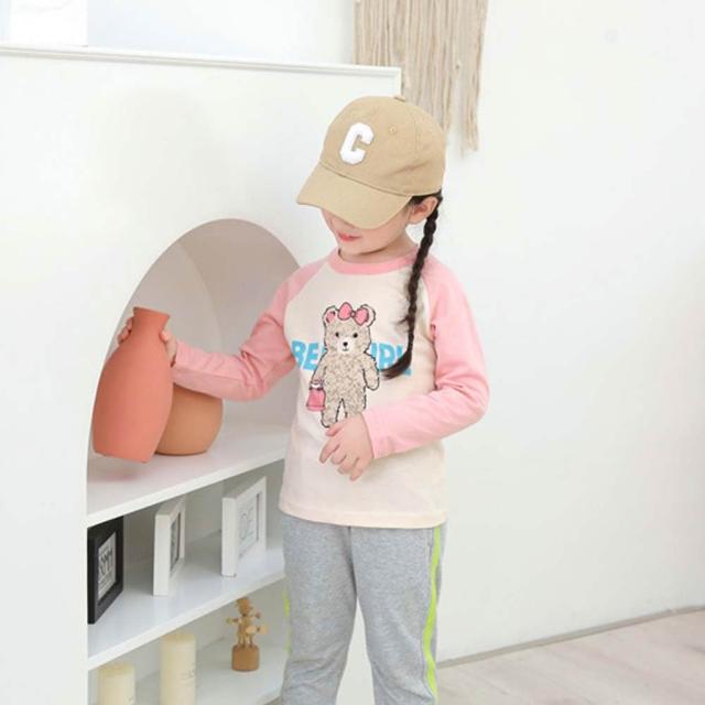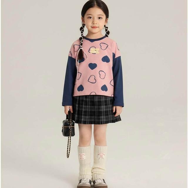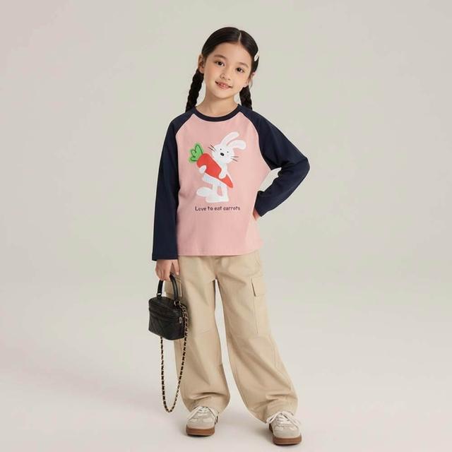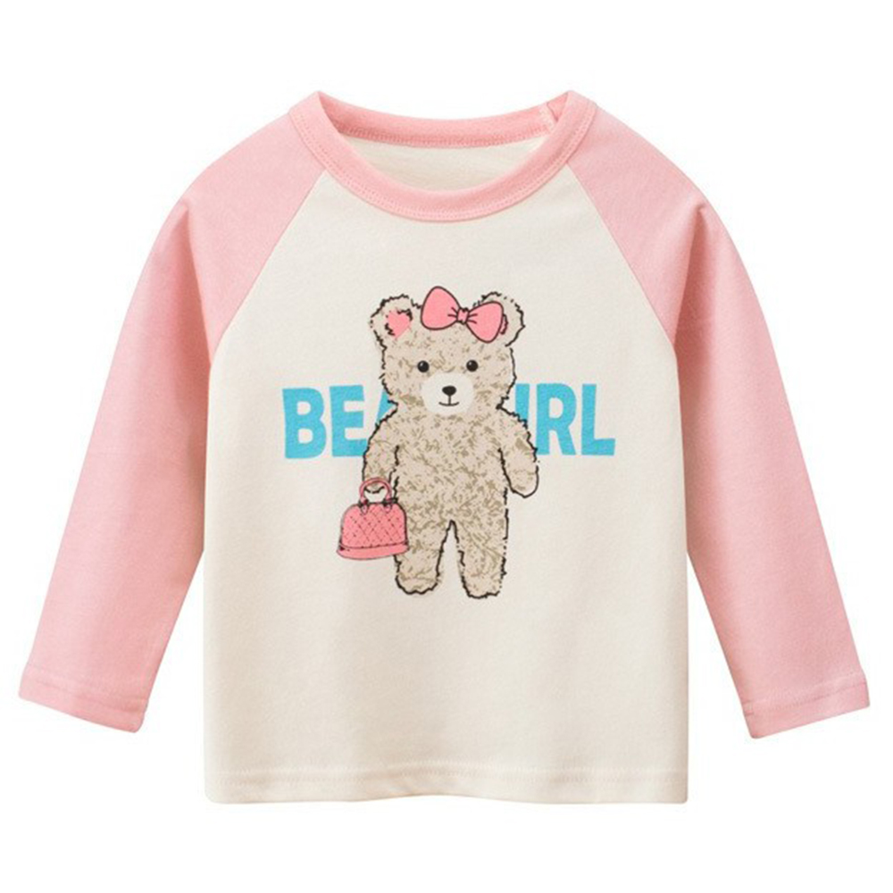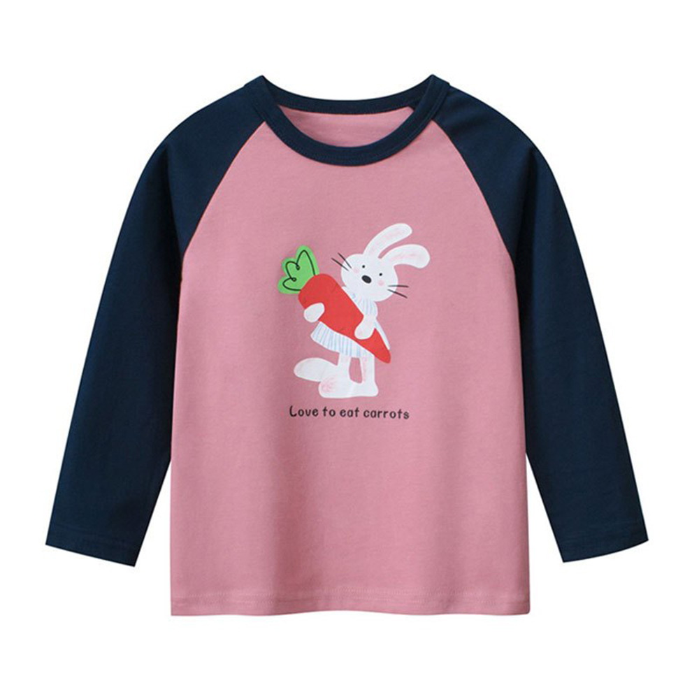 i揪團 兒童純棉圓領休閒長袖T恤 草莓插肩袖 女童長袖上衣 薄款T恤 兒童長袖 印花棉質童裝 拚色 撞色(B71)
