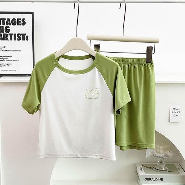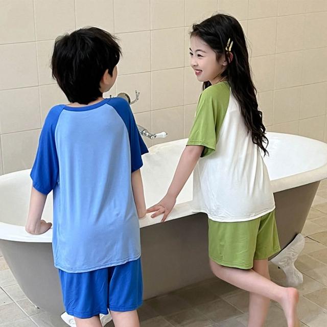 i揪團 兒童莫代爾拼接短袖套裝 女童套裝 男童套裝 兒童套裝 居家服 睡衣套裝 空調服 貓咪印花 兩件套 (E89-1)