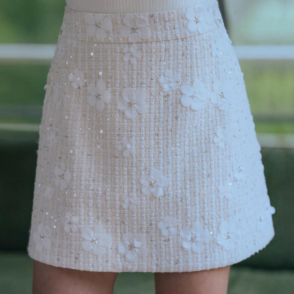 OMUSES小香風毛呢米白色短裙13-32405