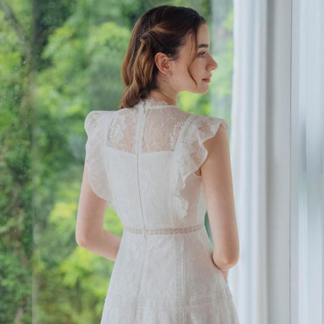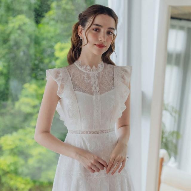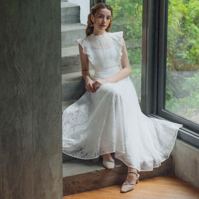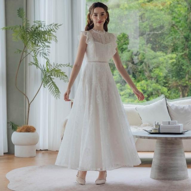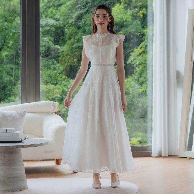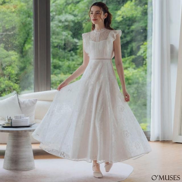 OMUSES重工蕾絲刺繡白色長禮服29-31058
