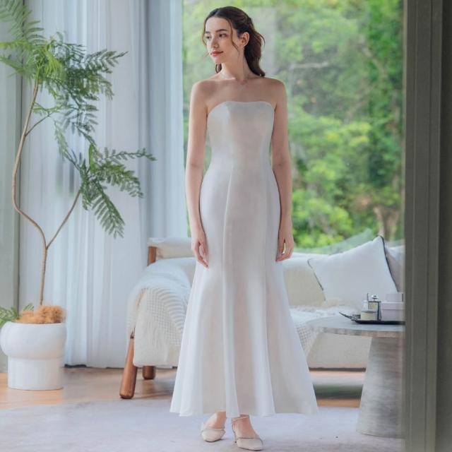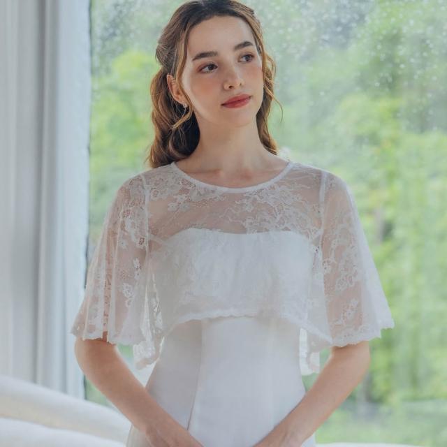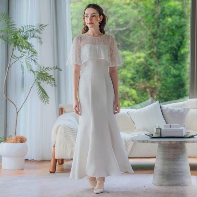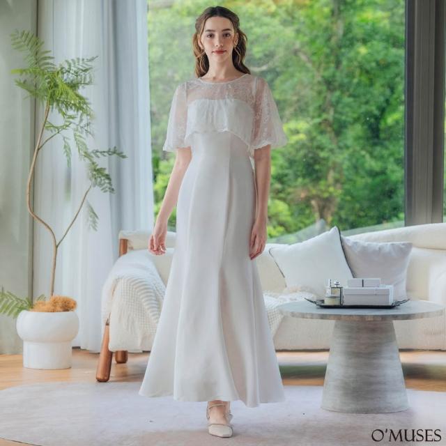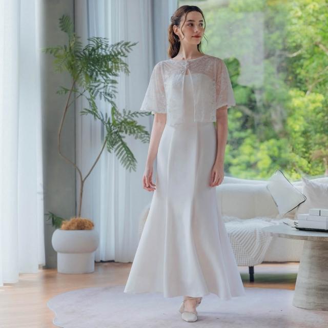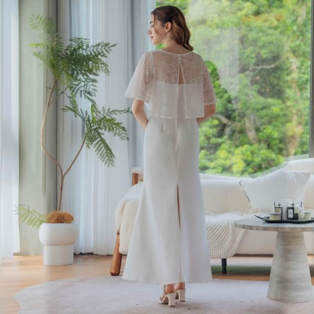 OMUSES兩件式平口蕾絲白色魚尾長禮服19-7724