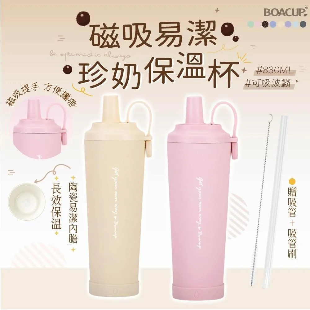 BOACUP絕美新款🌟磁吸易潔珍奶保溫杯 紫色/綠色/粉色/天空藍/霧霾藍/黑色/灰色/奶茶色 一起購(陶瓷杯 大象杯)