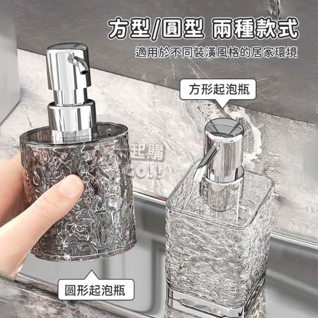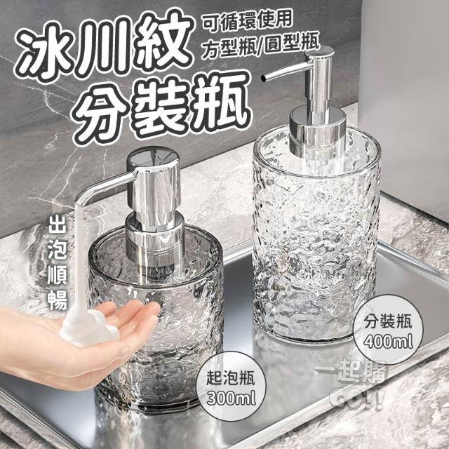 冰川紋分裝瓶/冰川紋起泡瓶 300ML/400ML 透黑/透銀 圓形/方形 一起購(分裝瓶 空瓶 起泡瓶 按壓瓶)