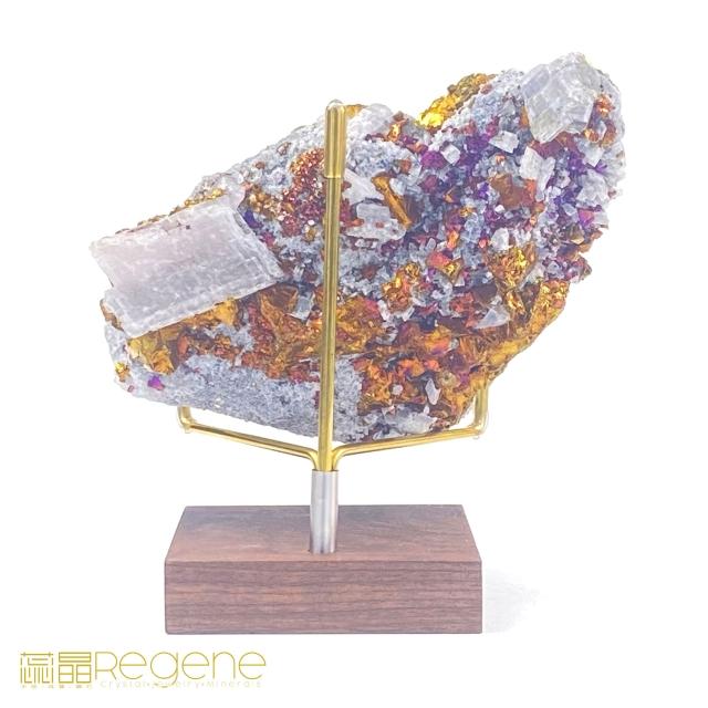 蕊晶REGENE 天然彩銅晶礦原石、五彩斑銅礦、(白水晶與斑銅礦共生); 傢俱擺飾、水晶消磁、鎮宅、開運招財、風水擺設、開幕賀禮、父親節、禮物