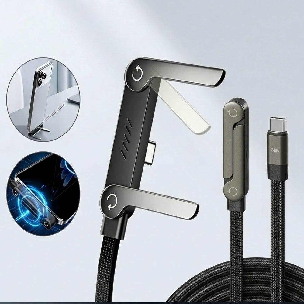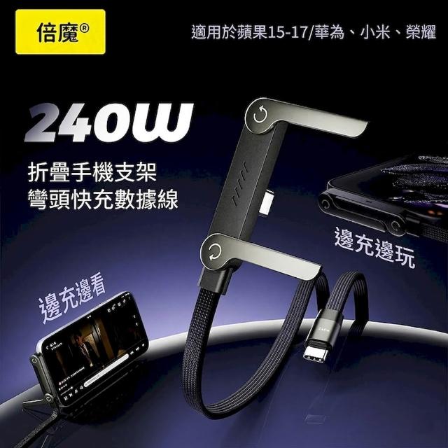 松鼠購物240W手機支架充電線 快充線 彎頭充電線 折疊支架 安卓 iphone 三星充電線 type c 傳輸線 蘋果