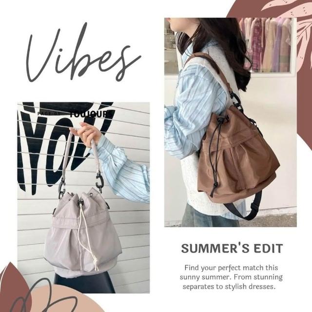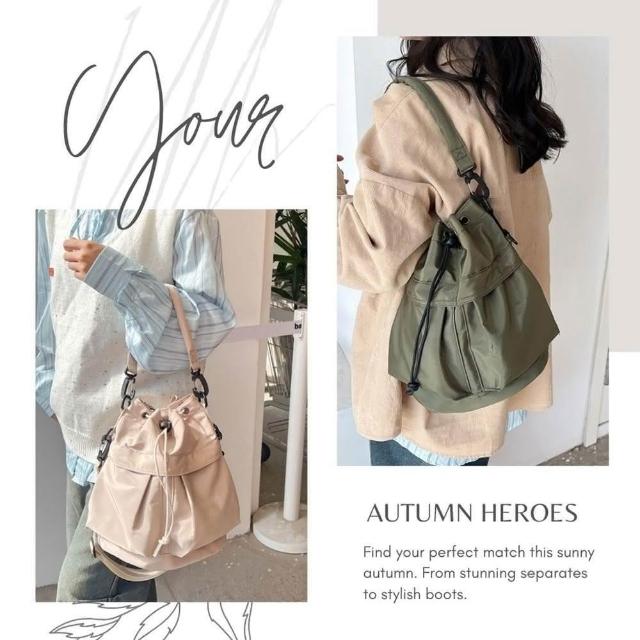 Bliss BKK工裝風抽繩尼龍兩用水桶包 斜背包 水桶包 尼龍包 手提包 肩背包 (9色可選)