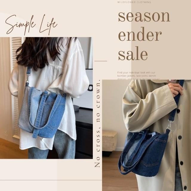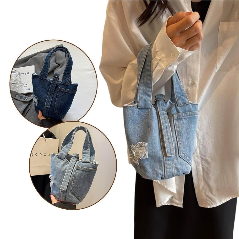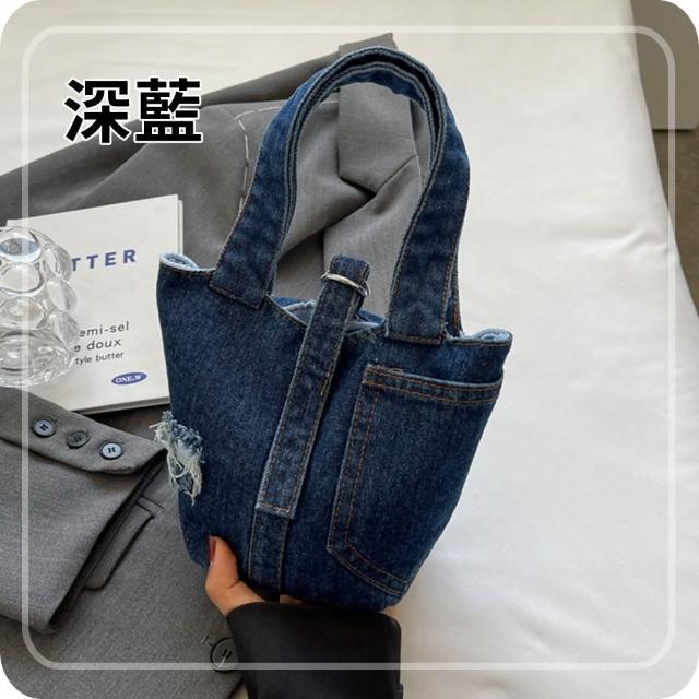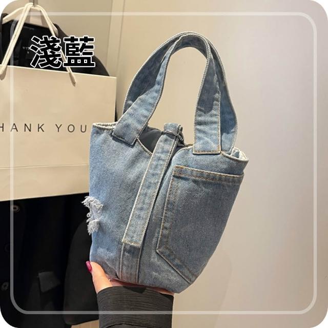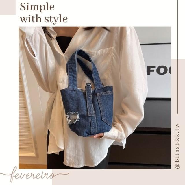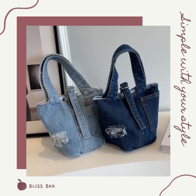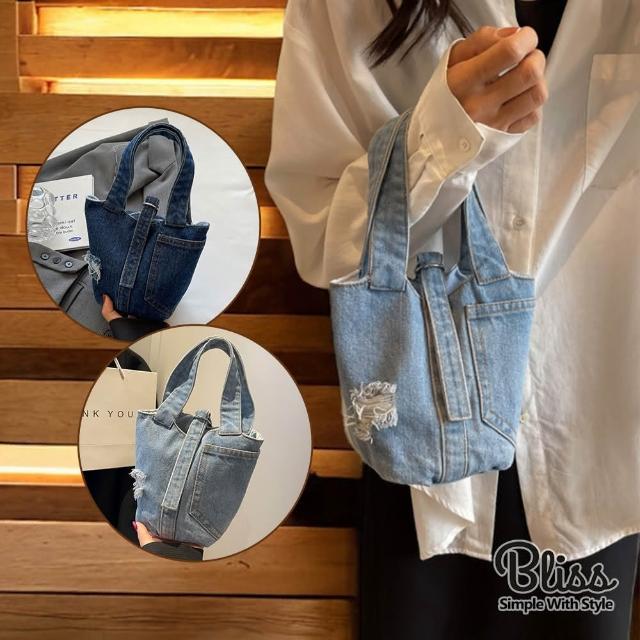 Bliss BKK文藝口袋刷破牛仔小款手提包 手提袋(2色可選)