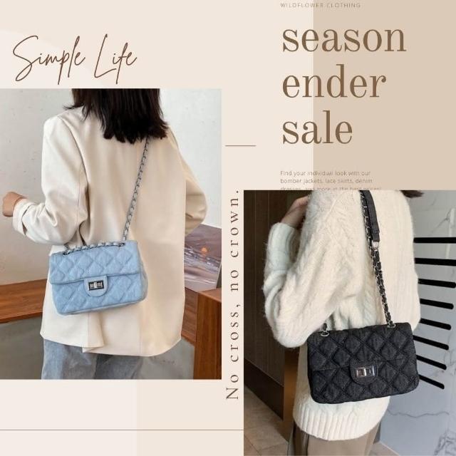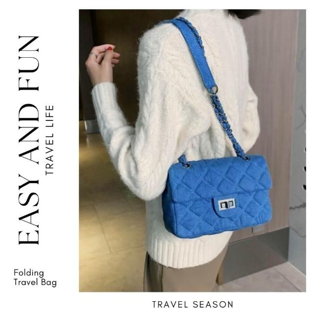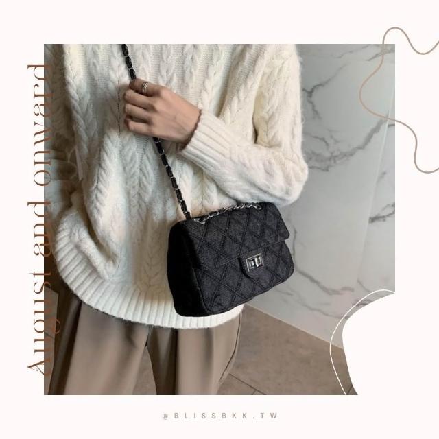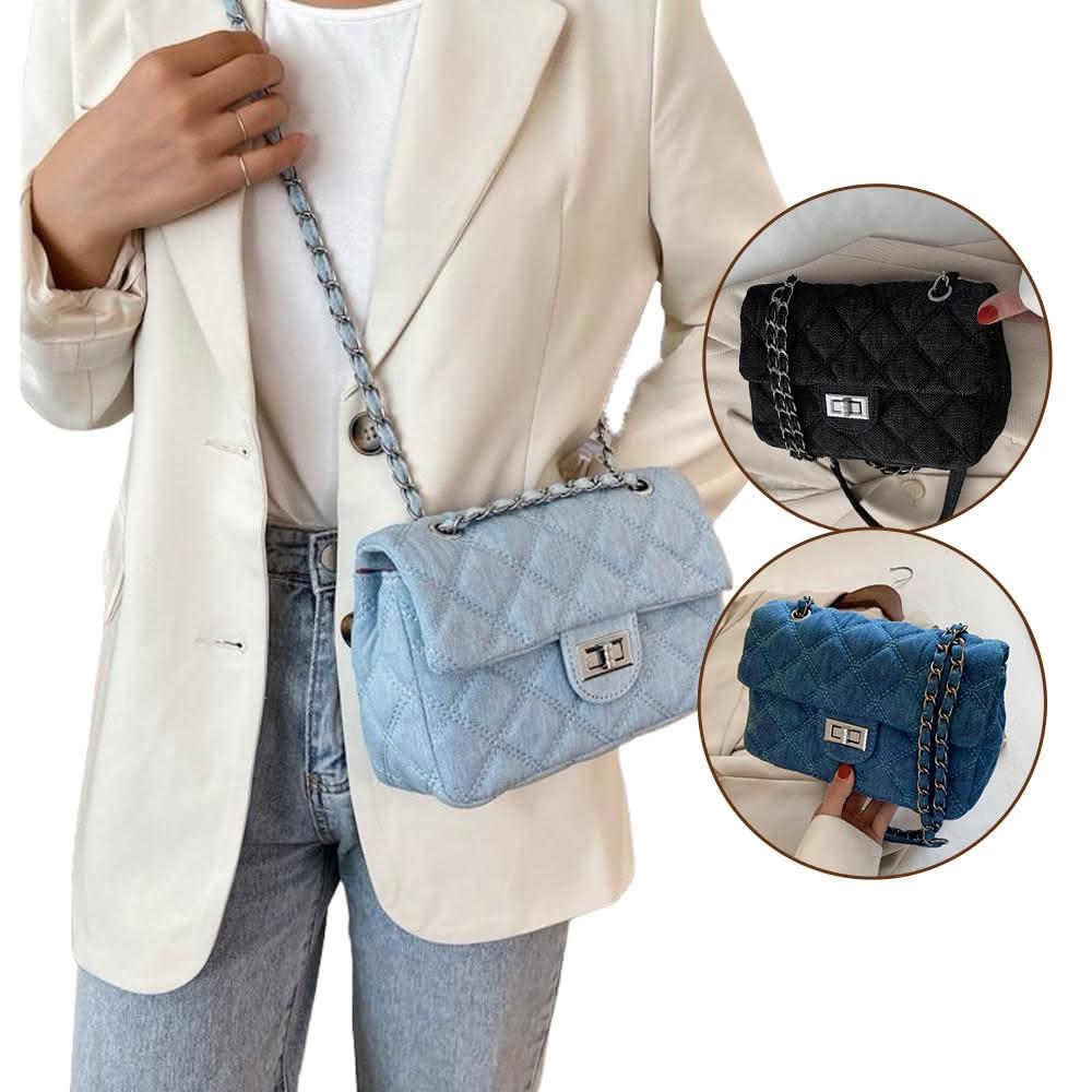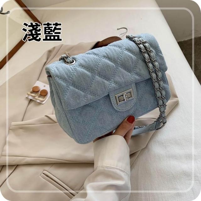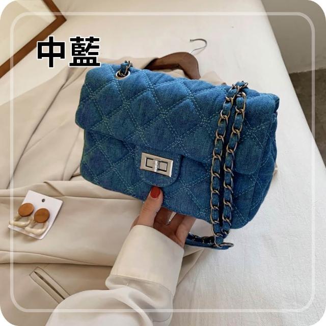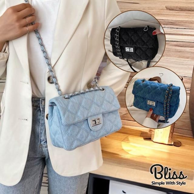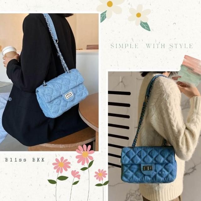 Bliss BKK牛仔菱格縫線鍊條包 附品牌防塵袋 斜背包 鍊條包 肩背包 牛仔包 側背包 鏈條包 方包 (3色可選)