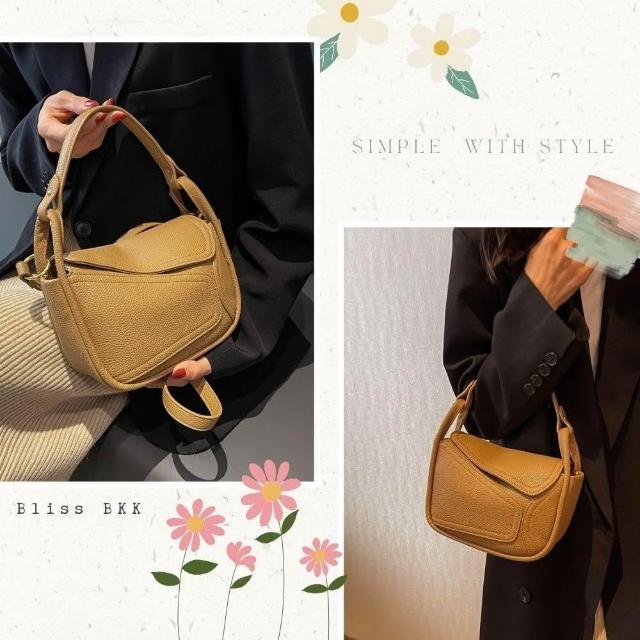 Bliss BKK復古幾何拼接皮革手提斜跨包 附品牌防塵袋 側背包 肩背包 美拉德 斜背包女 手提包 斜背包 (4色可選)