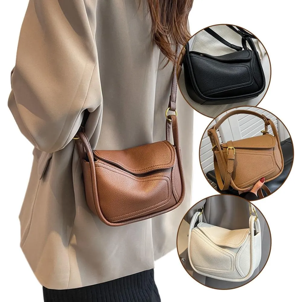 Bliss BKK復古幾何拼接皮革手提斜跨包 附品牌防塵袋 側背包 肩背包 美拉德 斜背包女 手提包 斜背包 (4色可選)
