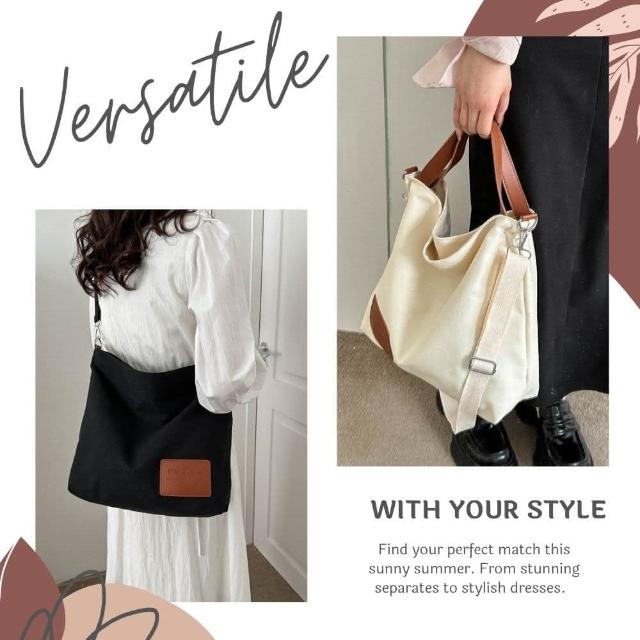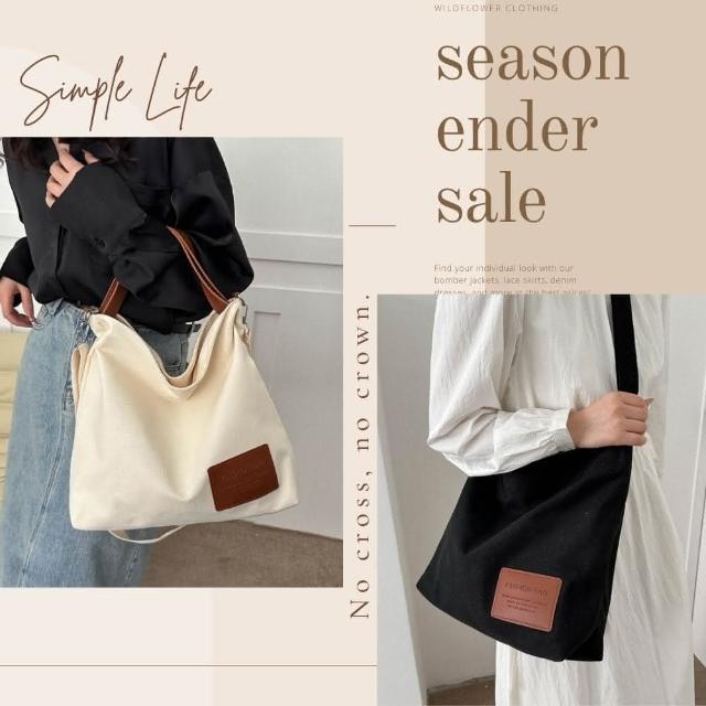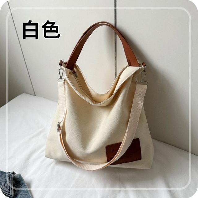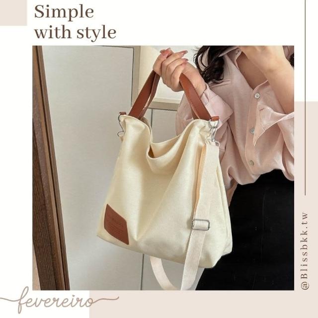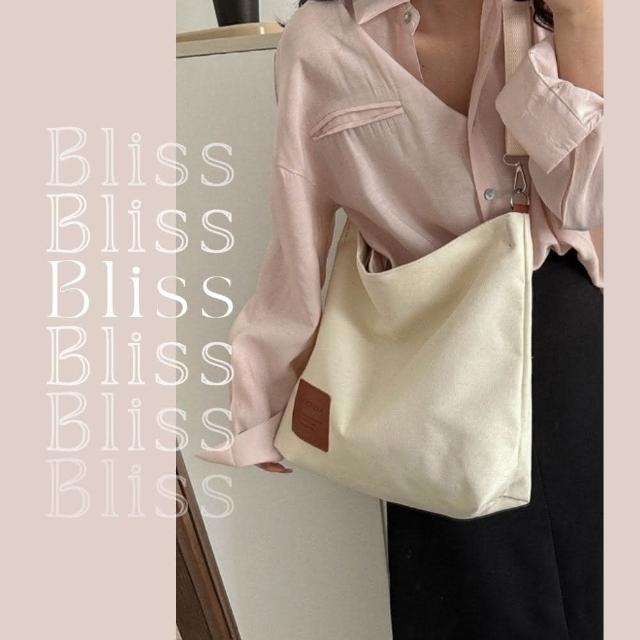 Bliss BKK皮革標手提斜背兩用帆布包 托特包 帆布包 手提包 肩背包 斜背包 帆布袋 無印風(2色可選)