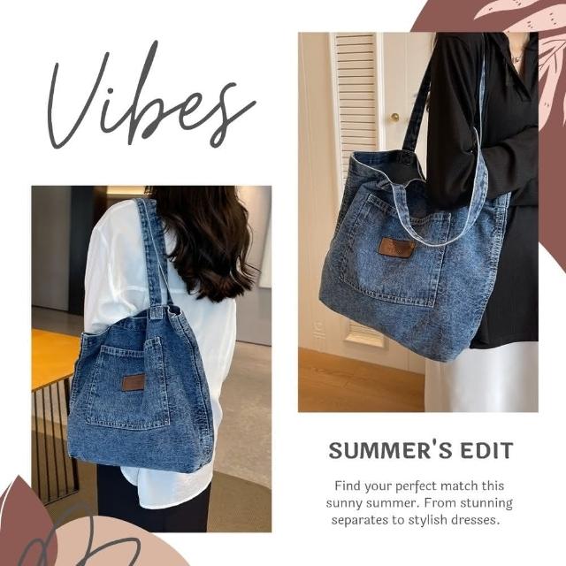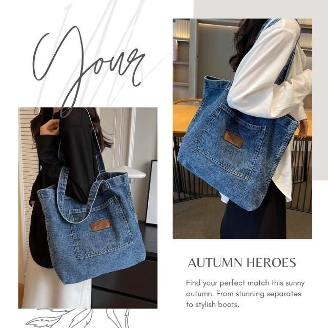 Bliss BKK皮革標7S大容量牛仔托特包 側背包 肩背包 牛仔包(2色可選)