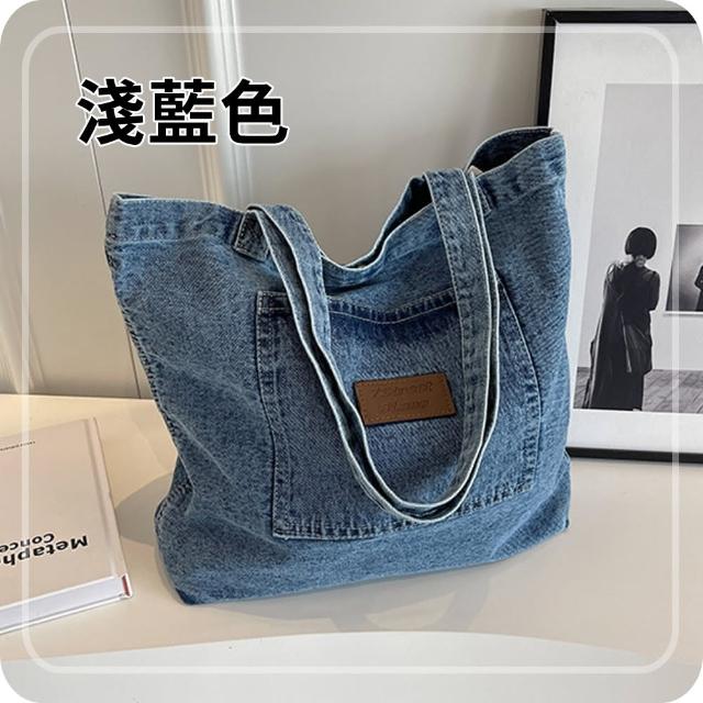Bliss BKK皮革標7S大容量牛仔托特包 側背包 肩背包 牛仔包(2色可選)