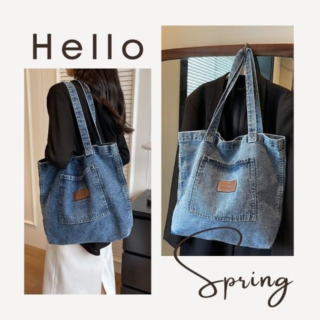 Bliss BKK皮革標7S大容量牛仔托特包 側背包 肩背包 牛仔包(2色可選)