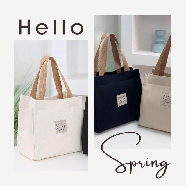 Bliss BKK可愛熊布標帆布手提包便當袋 便當袋 手提袋 帆布袋 手提包 餐袋 午餐袋 便當包 5色可選