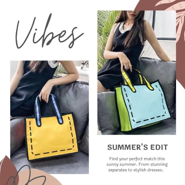 Bliss BKK趣味2D風色彩手提托特包 肩背包 托特包 造型包 A4包 (6色可選)