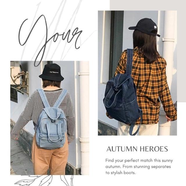 Bliss BKK牛仔休閒古著感雙肩後背包 學生 牛仔 情侶(2色可選)