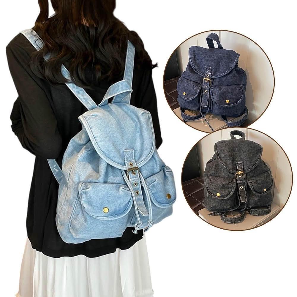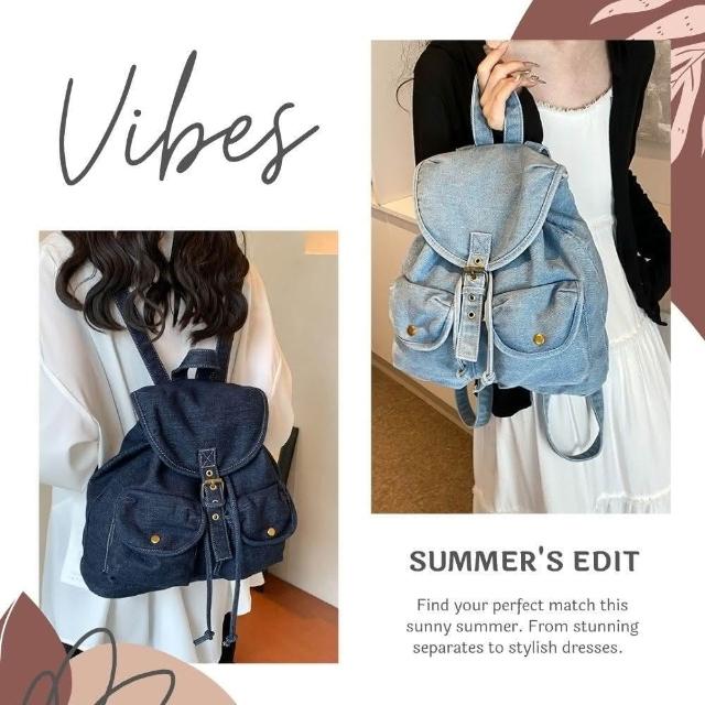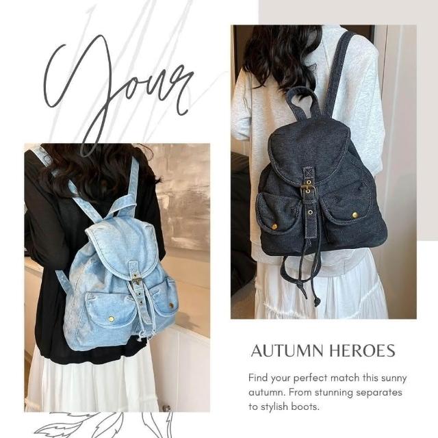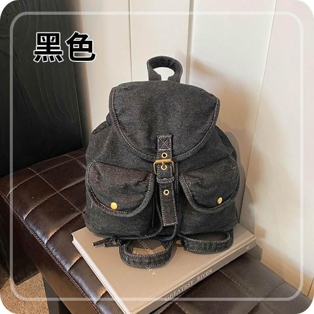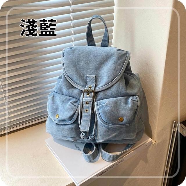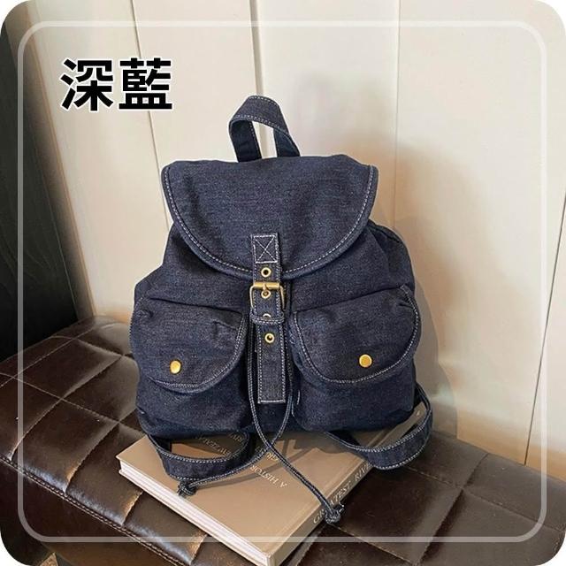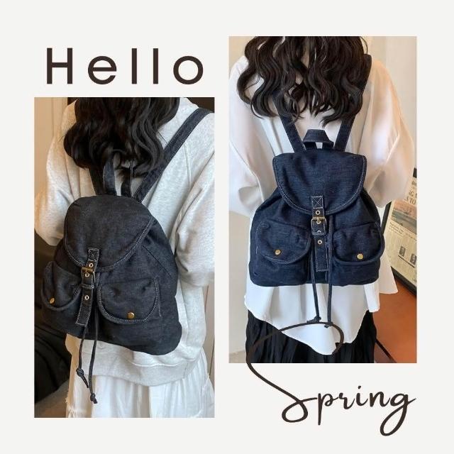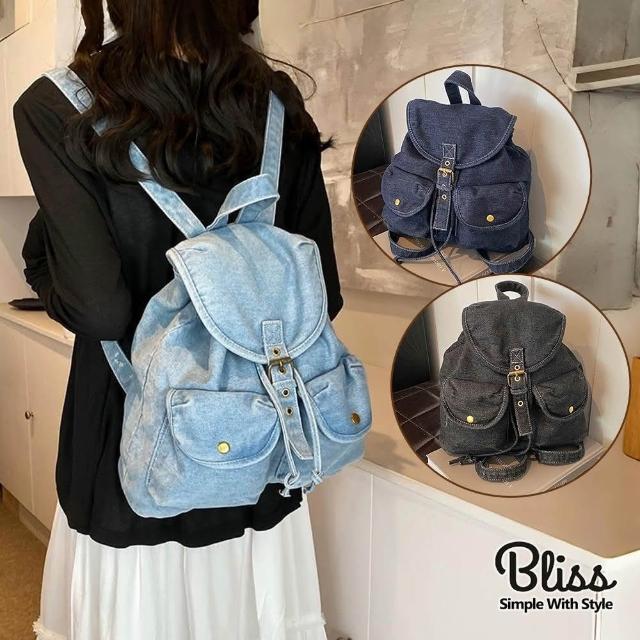 Bliss BKK氣質束口皮帶扣造型牛仔後背包 學生 上班族 休閒款(3色可選)