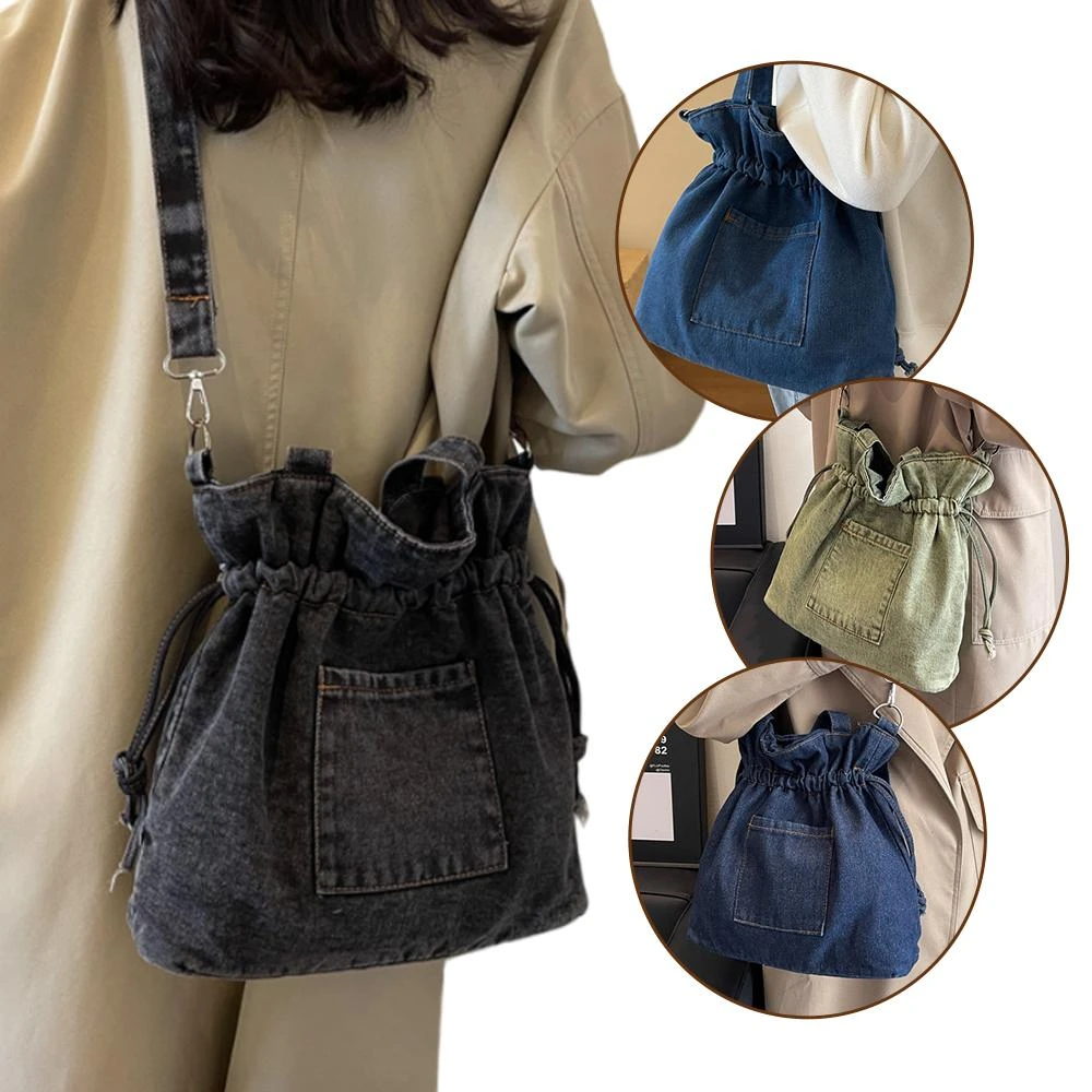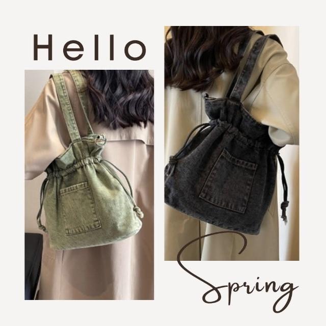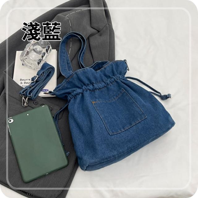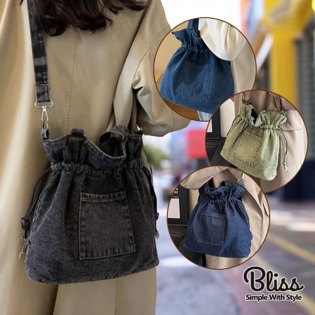 Bliss BKK軟牛仔布斜跨束口水桶包 束口包 牛仔包 肩背包 水桶包 4色可選