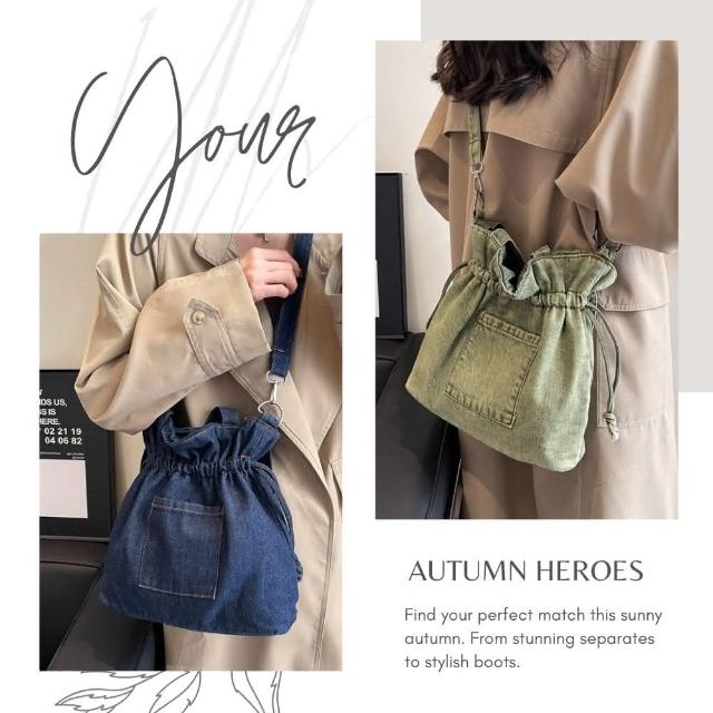 Bliss BKK軟牛仔布斜跨束口水桶包 束口包 牛仔包 肩背包 水桶包 4色可選