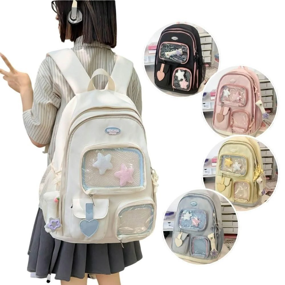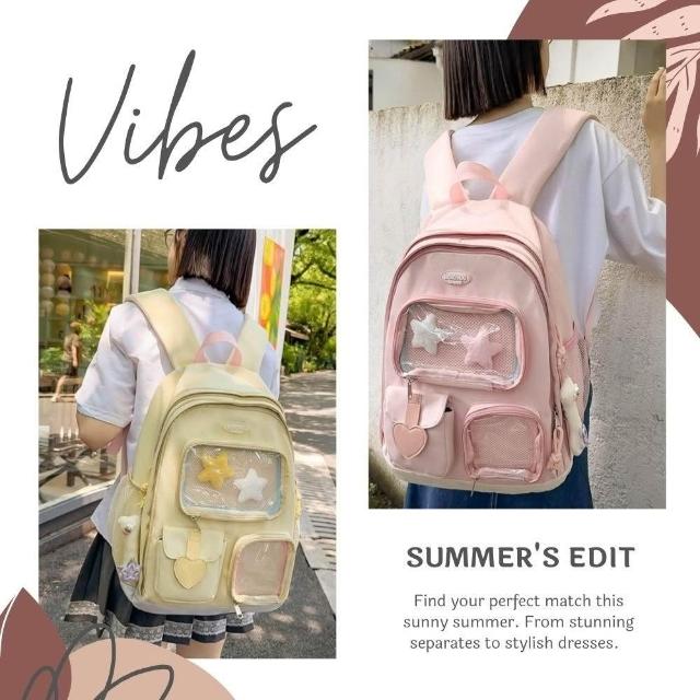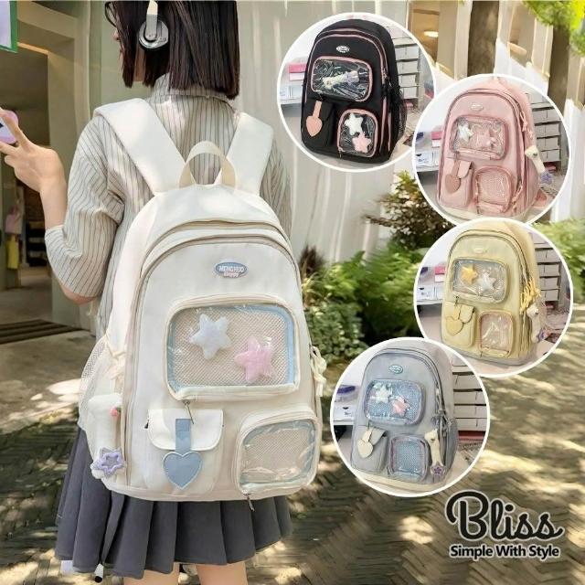 Bliss BKK日系奶油風透明袋設計後背包 後背包 痛包 痛包後背包 校園風 書包 學院 (5色可選)