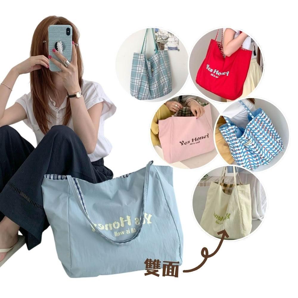 Bliss BKKYH雙面翻轉印花大托特包 雙面包 肩背包 側背包 帆布袋 購物袋 (6色可選)