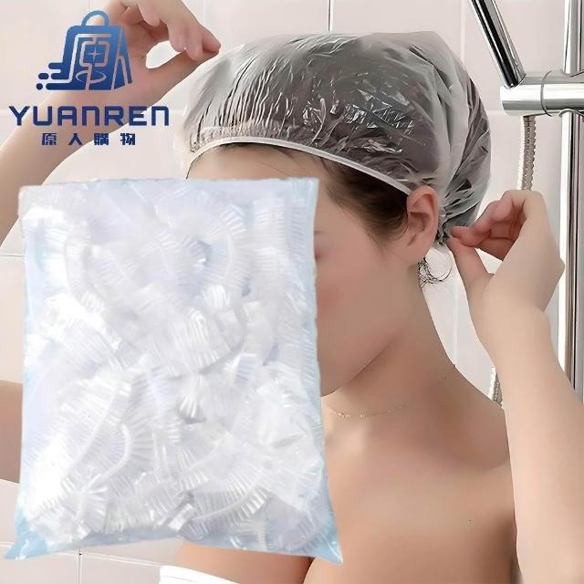 YUANREN 原人購物透明浴帽 一次性浴帽100入(鬆緊浴帽 防水 舒適 盥洗用品 頭套 發帽 拋棄式髮帽 透明浴帽 網帽 防塵罩 浴帽)