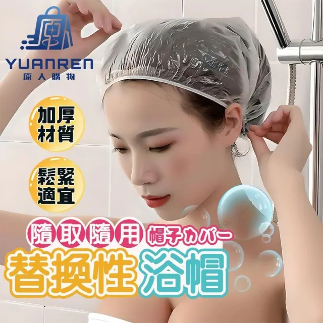 YUANREN 原人購物透明浴帽 一次性浴帽100入(鬆緊浴帽 防水 舒適 盥洗用品 頭套 發帽 拋棄式髮帽 透明浴帽 網帽 防塵罩 浴帽)