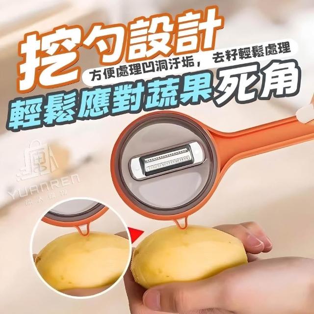 YUANREN 原人購物削皮器 削皮刀 去果皮 帶盒削皮刀 水果削皮刀 不鏽鋼削皮刀 廚房 去皮 挖勺設計 省時省力